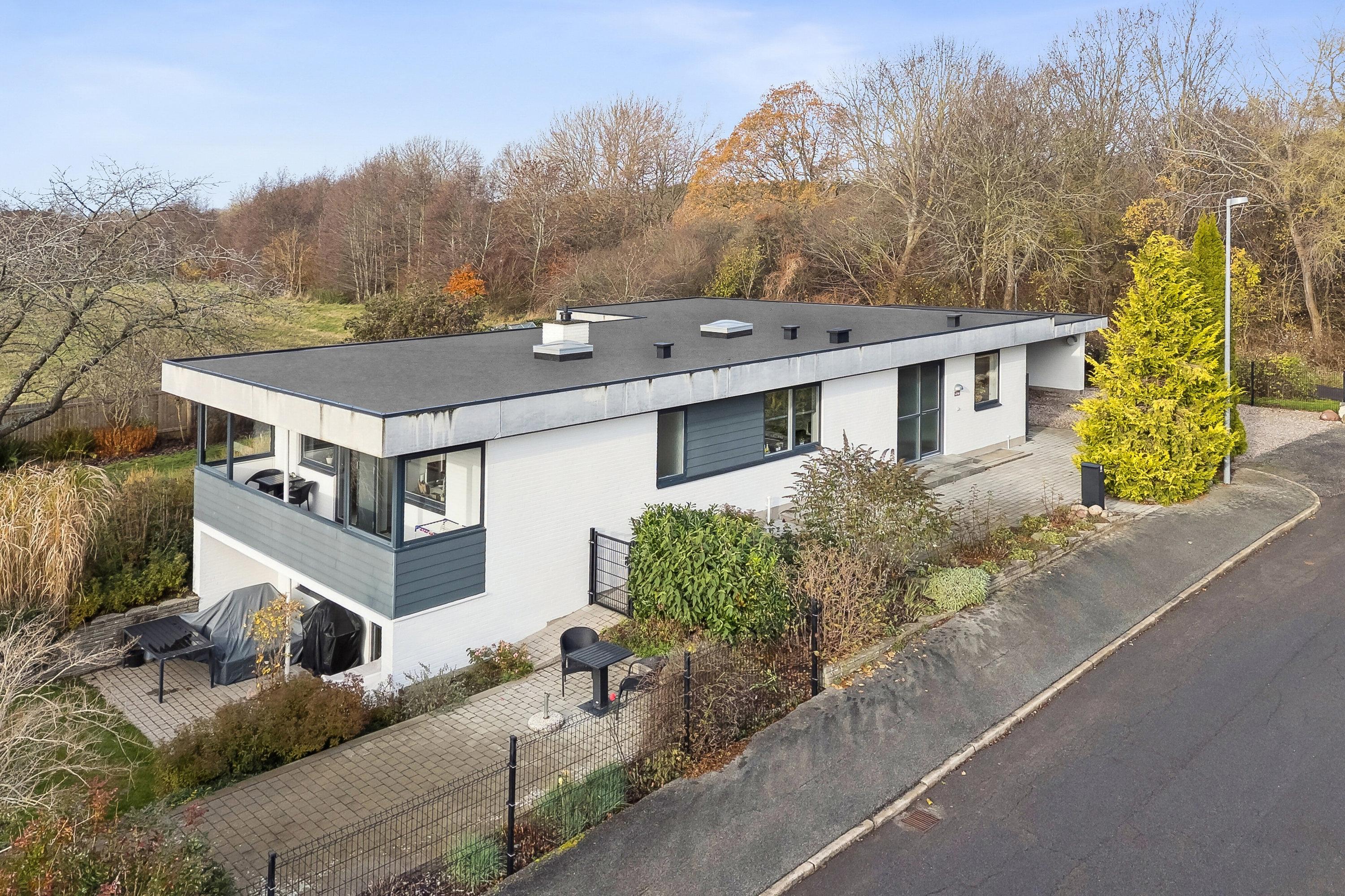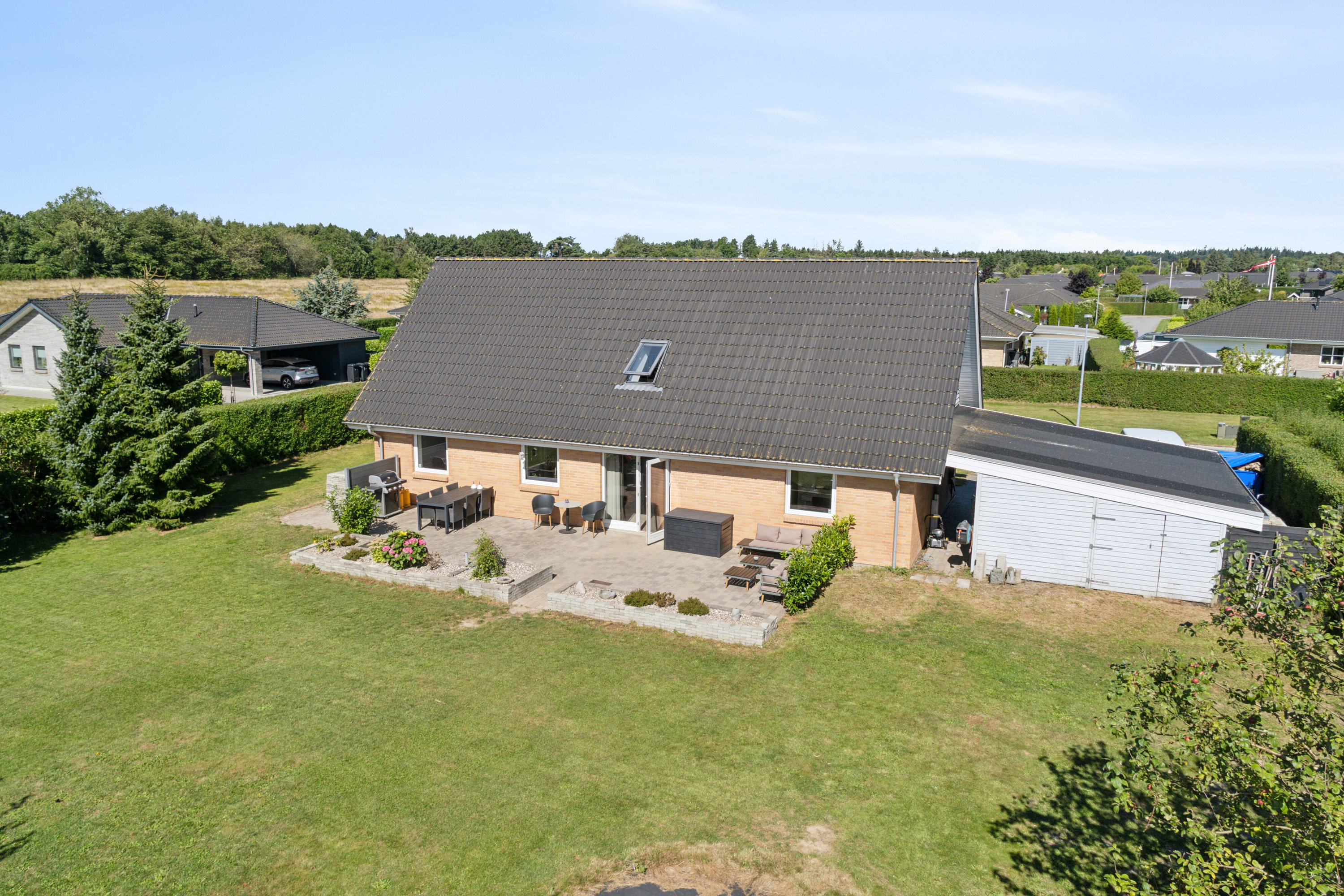 - Tagdækningsmateriale: Fibercement, herunder asbest (bølge- eller skifer-eternit)