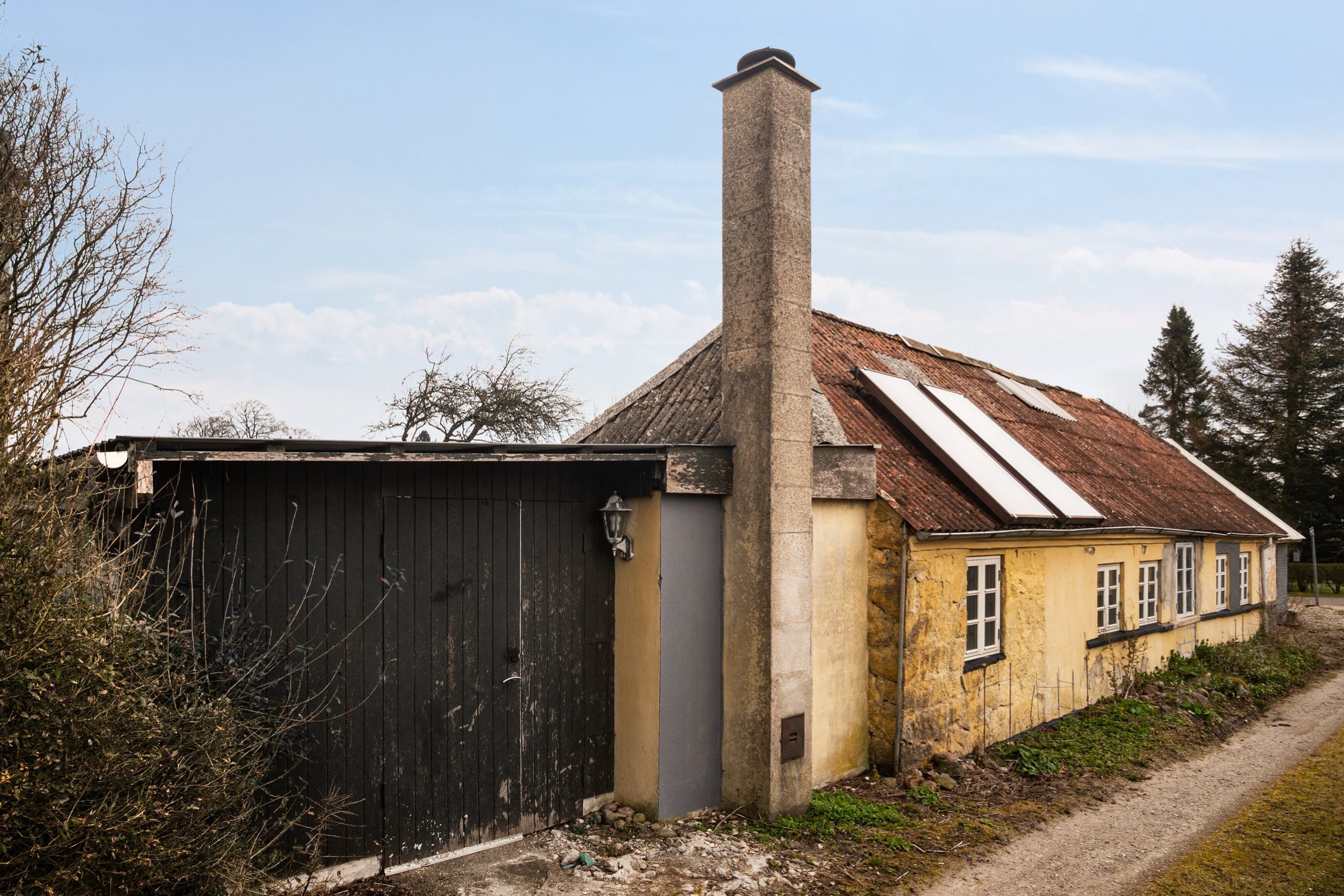 - Tagdækningsmateriale: Fibercement, herunder asbest (bølge- eller skifer-eternit)