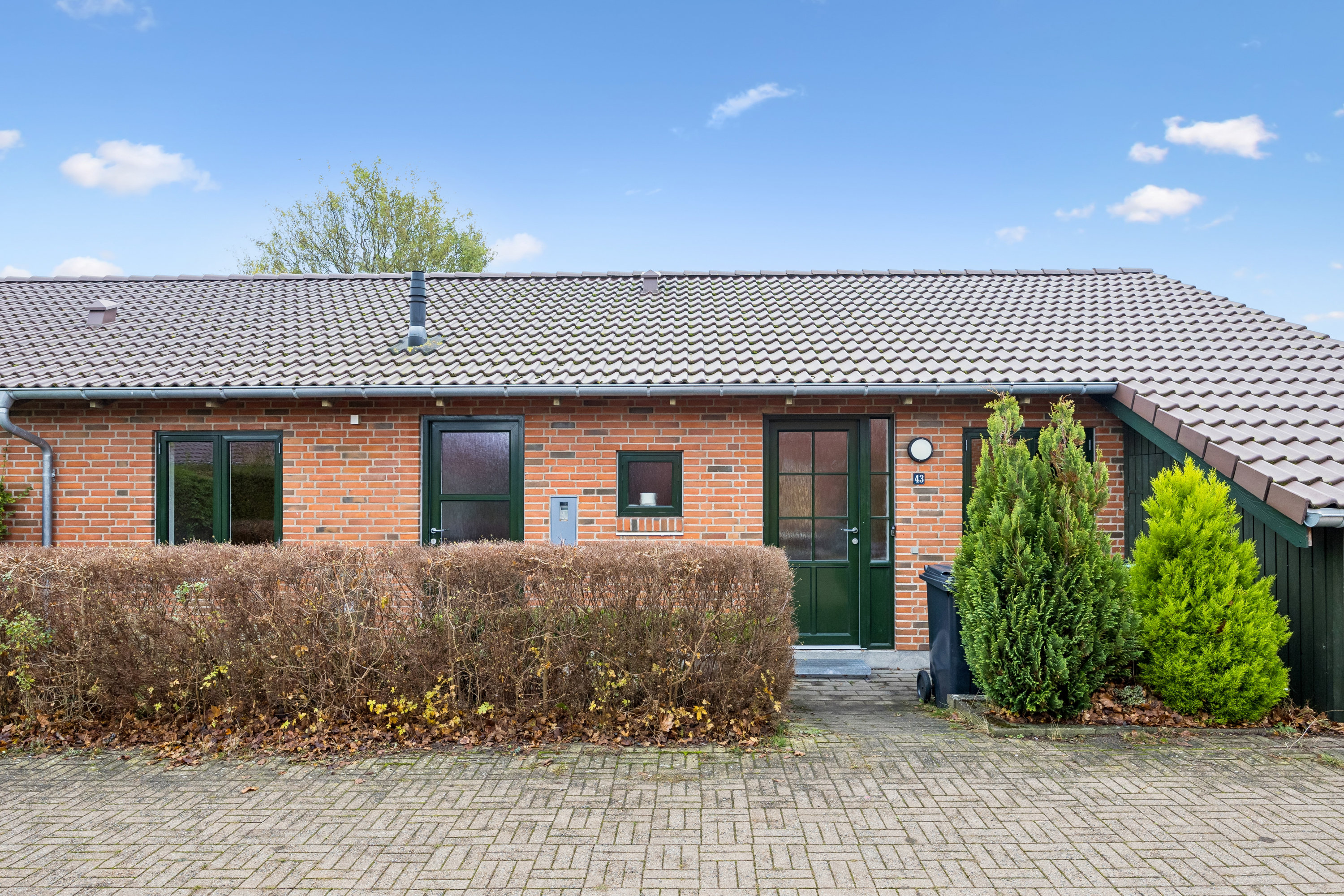 EJENDOM Ejendommen er opført i røde mursten og fremstår klassisk og vedligeholdelsesvenlig. Den private indgang afskærmes af en velholdt hæk, som giver en behagelig fornemmelse af privatliv allerede før, man træder ind ad døren.