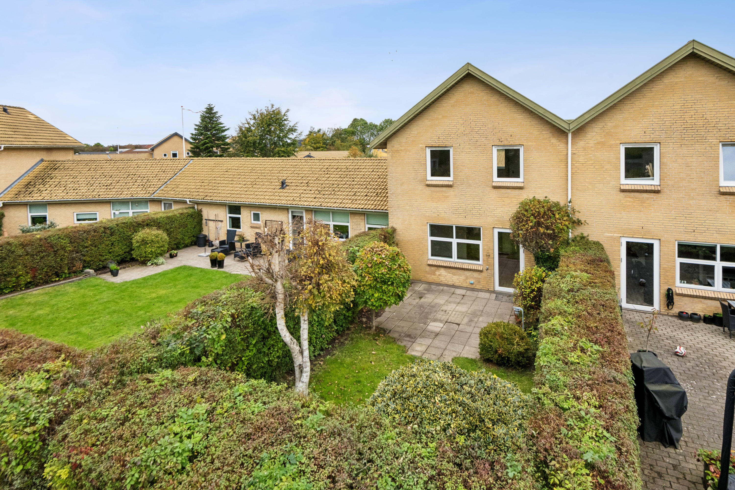I kan leve det rolige og trygge forstadsliv i Klarup, mens I samtidig bor under 20 minutter i bil fra det stemningsfulde storbyliv i hjertet af Aalborg. Her i Klarup finder I jeres nye hjem i en hyggelig bebyggelse, hvor rækkehuse folder sig ud over lukkede veje med hverdagen i det nære nabolag. De daglige gøremål kan altså klares til fods eller på cykel, og der går ikke mange minutter, før I finder frem til bl.a. børnehuset, fitness, lægehuset, grønne områder, bageren, de gode indkøbsmuligheder, skolen, foreningslivet i hallen – ja, Klarup har alt, hvad I kan ønske jer.