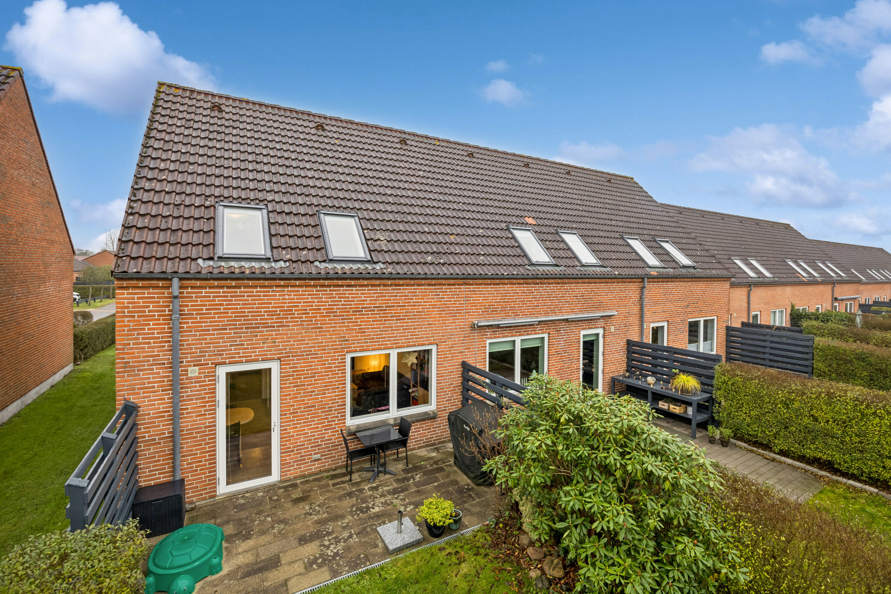 Udearealerne byder på en solrig terrasse og en grøn have med god plads til leg og afslapning. De brede glasskydedøre til terrassen inviterer til at nyde morgenkaffen under åben himmel, og haven er omkranset af lavt hegn, der skærmer af mod nysgerrige blikke. En udhusbygning giver ekstra opbevaringsmulighed, mens carporten sikrer bilen læ og beskyttelse.