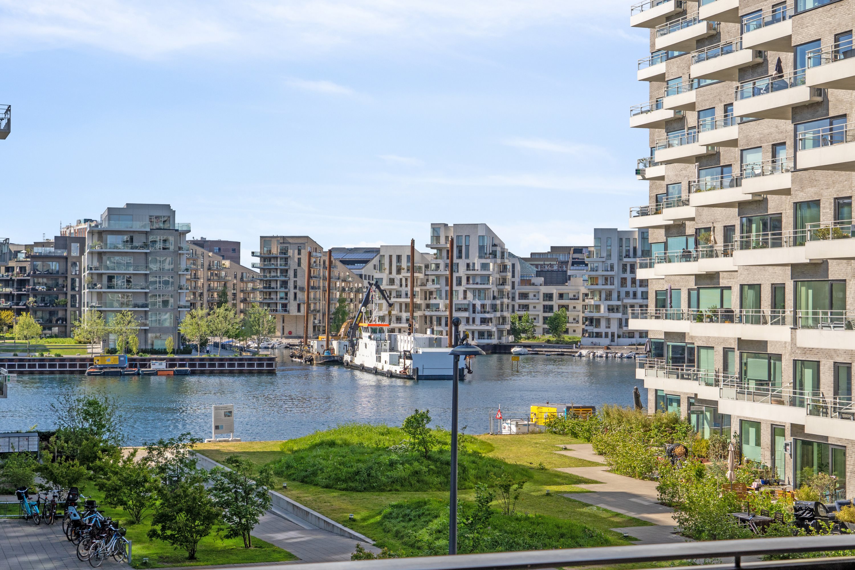 Med sin unikke placering på Islands Brygge får du det bedste af begge verdener – en naturskøn udsigt kombineret med byens livlige puls. Du bor få skridt fra hyggelige caféer, restauranter og indkøbsmuligheder, og med metro og cykelstier lige i nærheden er det let at komme rundt.