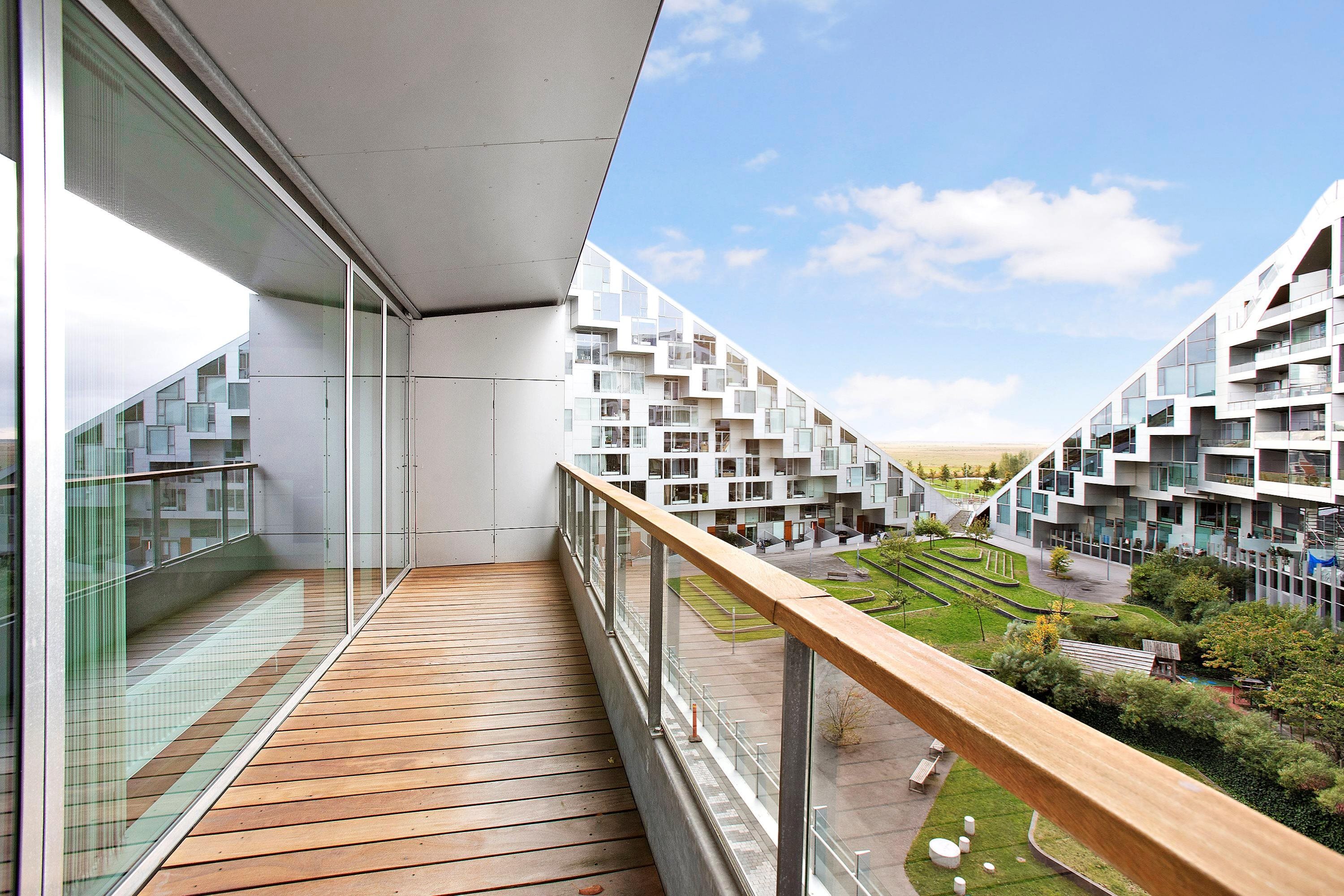 Lejligheden er beliggende i et stilfuldt opført og prisvindende byggeri fra 2010, som er tegnet af BIG med Bjarke Ingels i spidsen. På fællesarealerne finder I flere rekreative områder med siddekroge og smagfuldt anlagte træer og beplantning, mens bygningen rummer et parkeringshus.