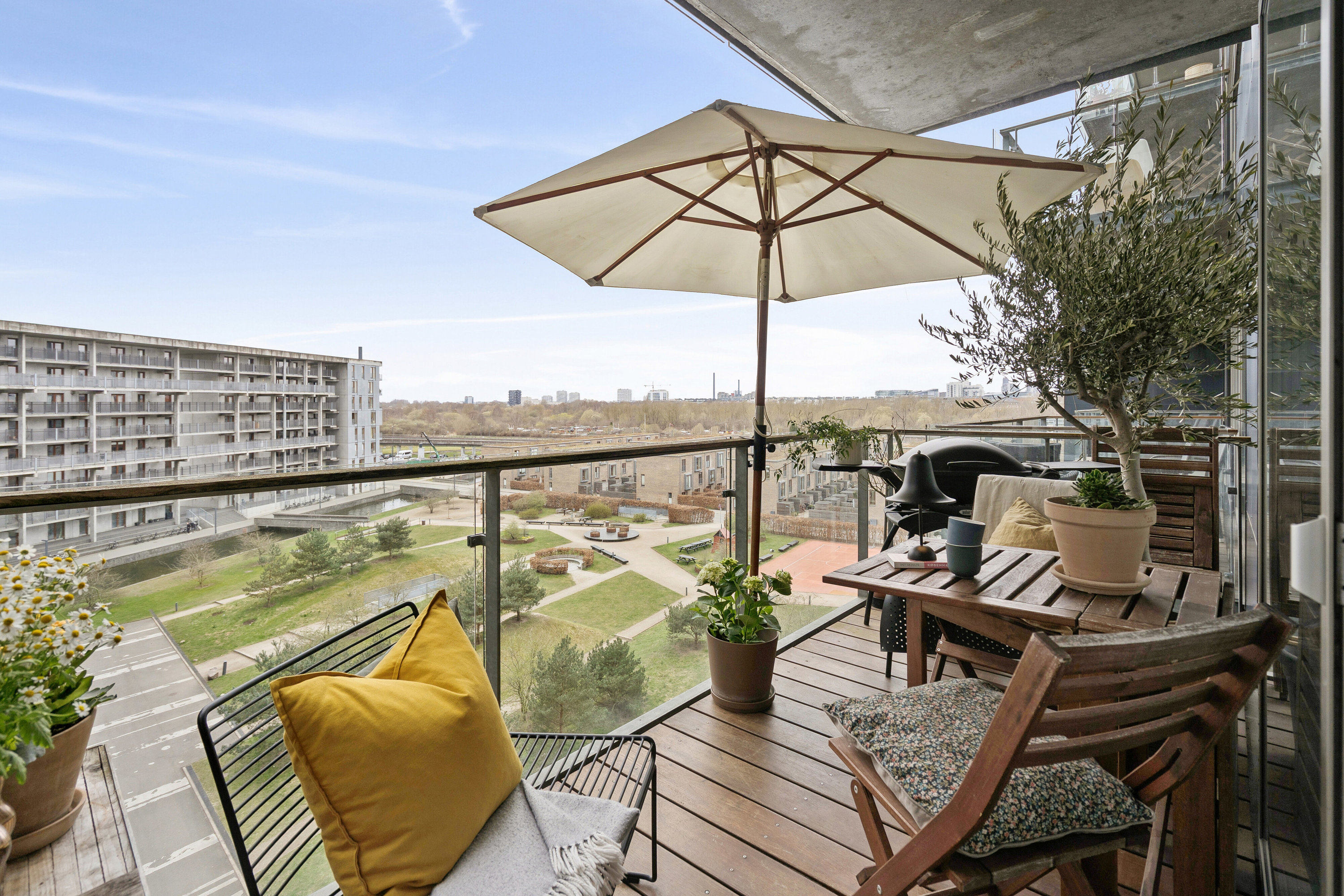 Flot, lys lejlighed med sydvendt altan og udsigt over Amager Fælled