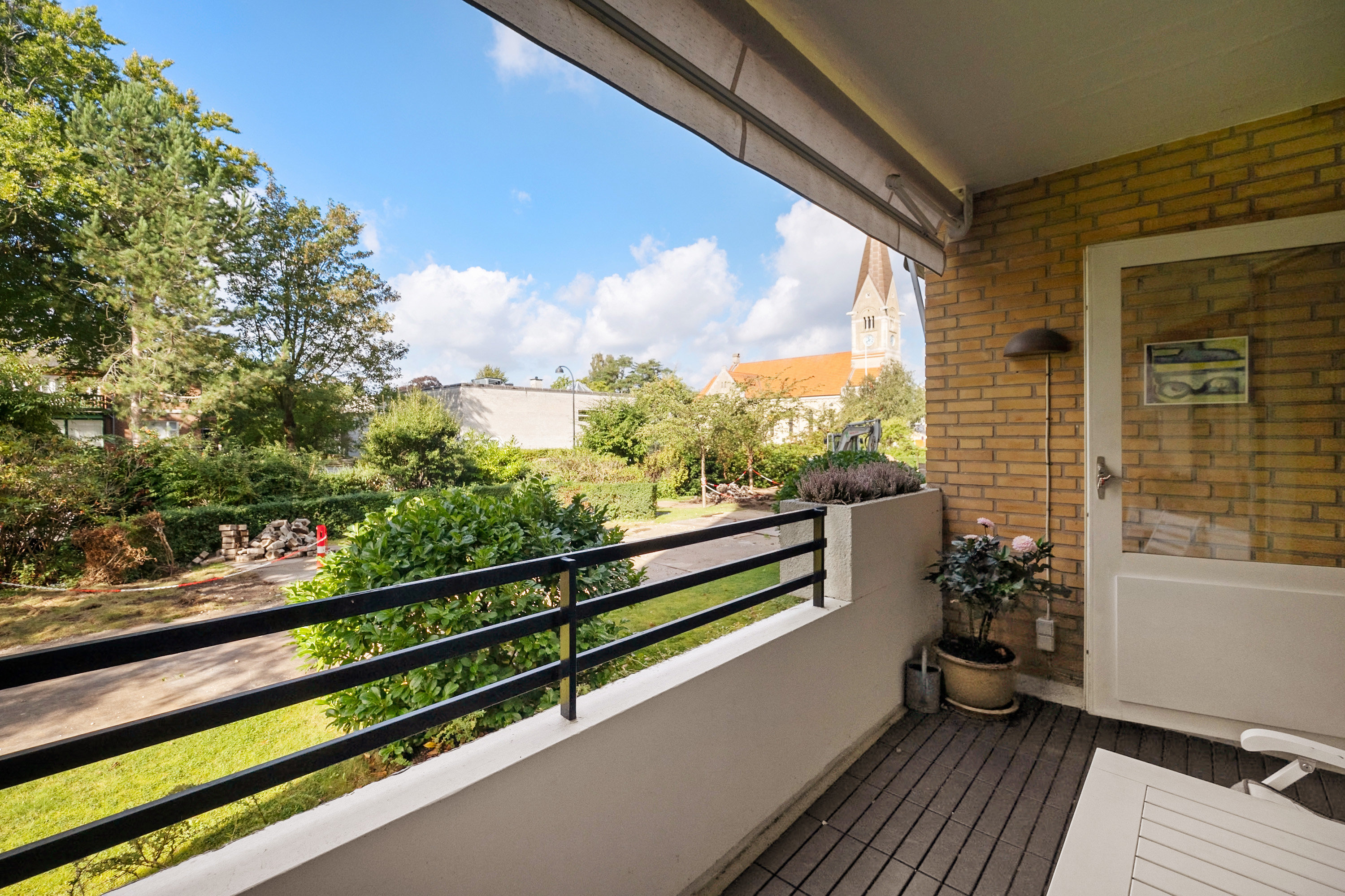 Lys og indbydende lejlighed i Hellerup med solrig altan og grønt kig