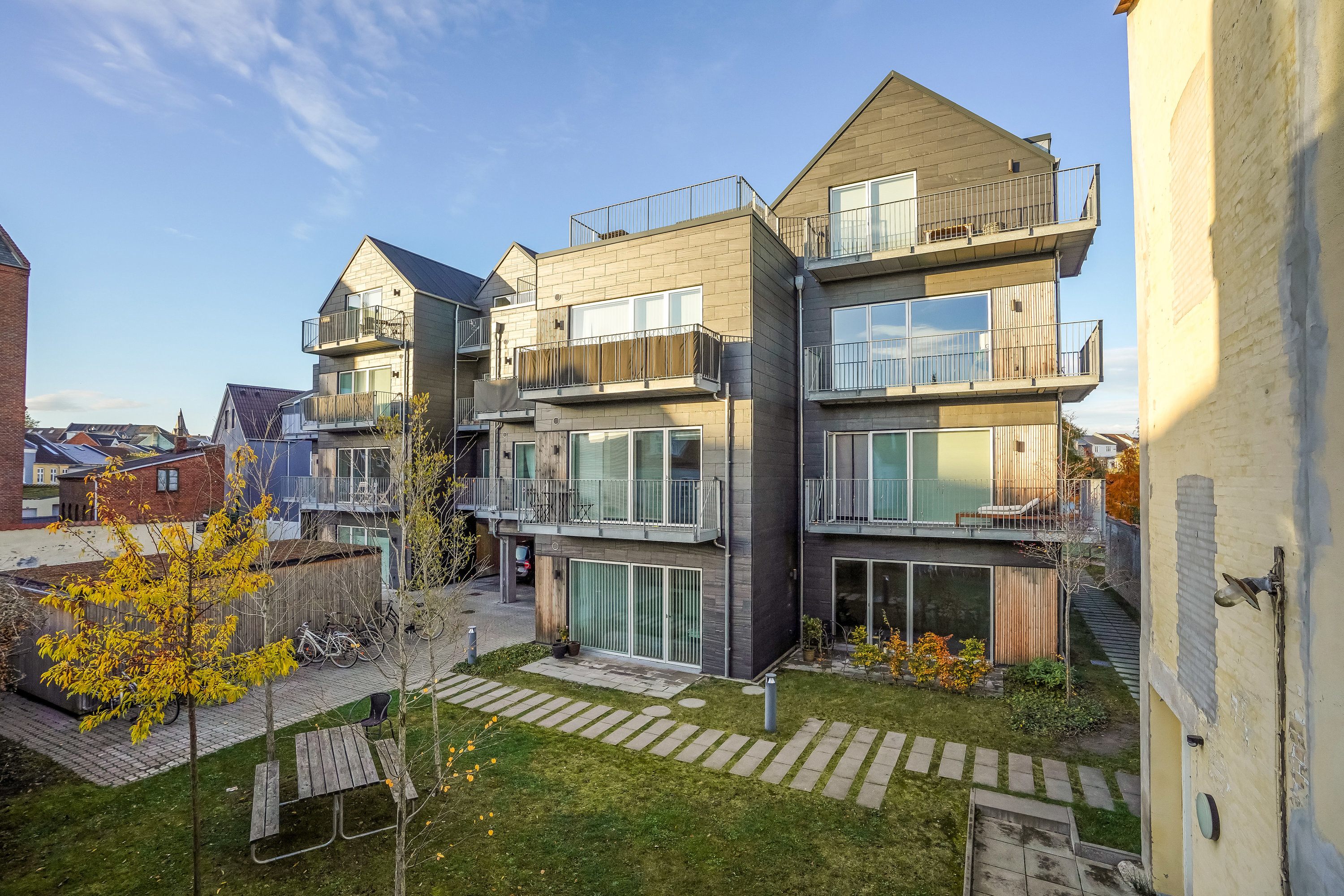 Beliggenheden er noget helt særligt: Du bor centralt, med gåafstand til alt – caféer, indkøb, offentlig transport og kulturelle tilbud – og alligevel gemt væk fra larmen, i rolige omgivelser, hvor der er tænkt på både trivsel og tryghed.