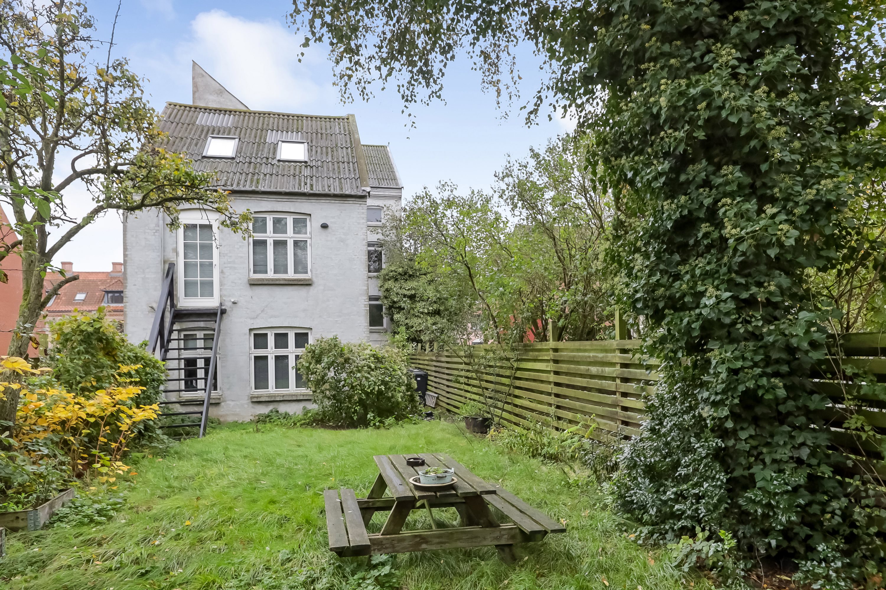 Udendørs finder du en hyggelig, fælles gårdhave, hvor du kan nyde solen eller drikke din morgenkaffe i fredelige omgivelser. Foran ejendommen er der gode parkeringsforhold, så du slipper for jagten på en plads.