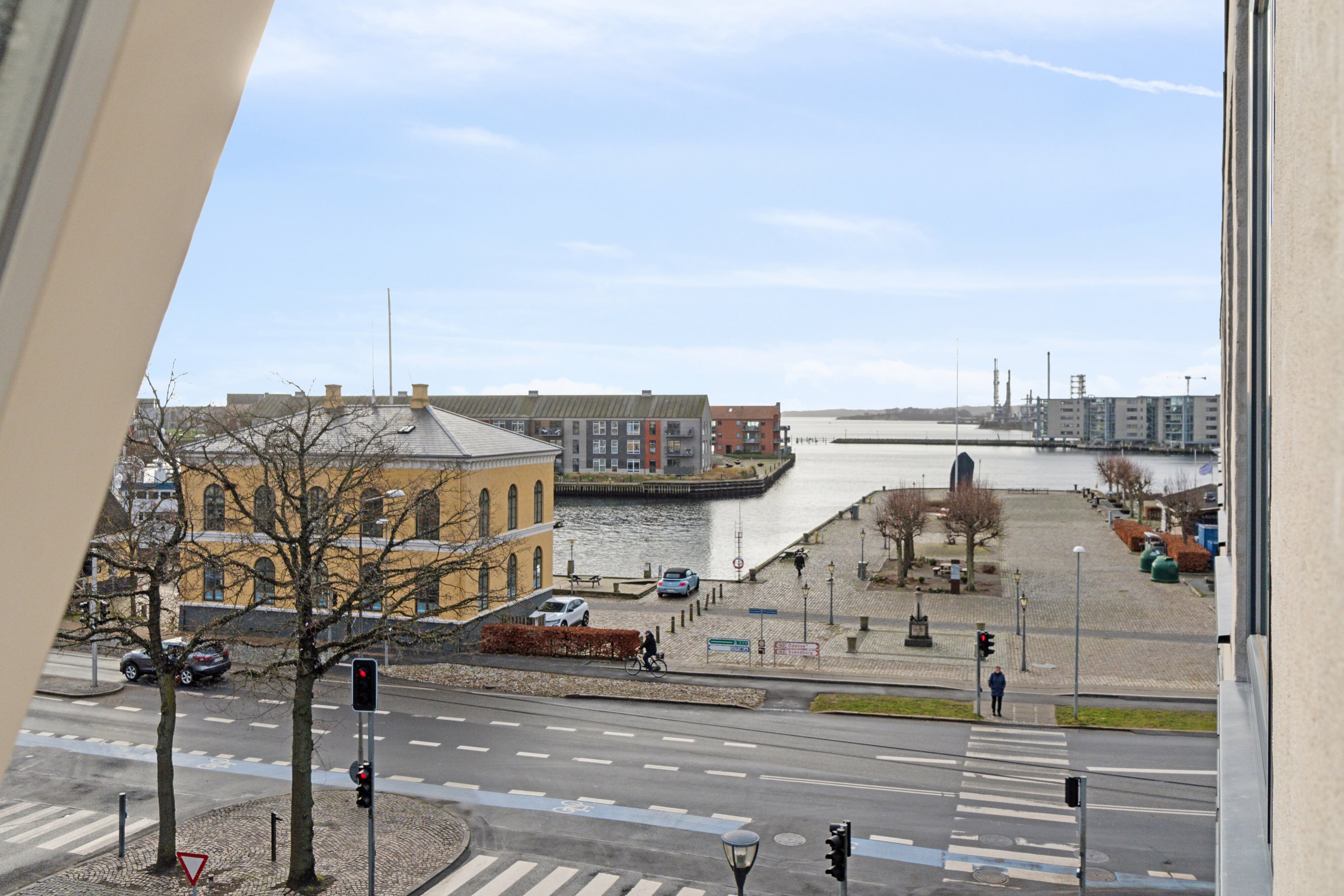 Beliggende på øverste etage i en velholdt ejendom med elevator, får du her fordelene ved at bo uden en oven samt et flot udsigt, som kun bliver bedre af lejlighedens centrale placering. Alle byens faciliteter, butikker og offentlige transporter er tæt på, hvilket gør hverdagen yderst praktisk. Der er evt. også mulighed for at leje en parkeringsplads i den lukkede gård, hvilket er en stor fordel i centrum.