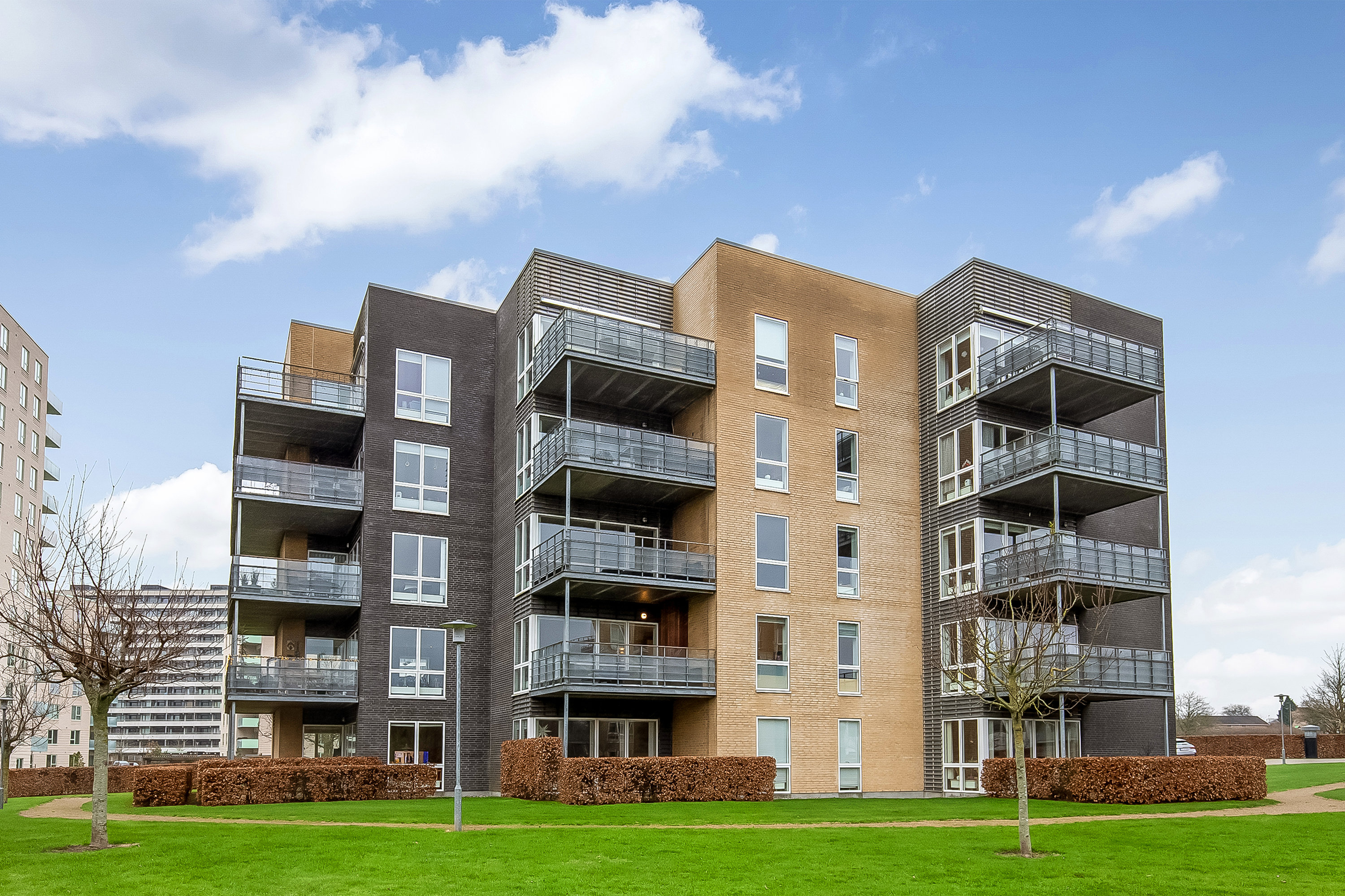 Elevator i opgangen sikrer nem adgang, og den private altan giver ekstra plads til udendørslivet med udsigt over området.