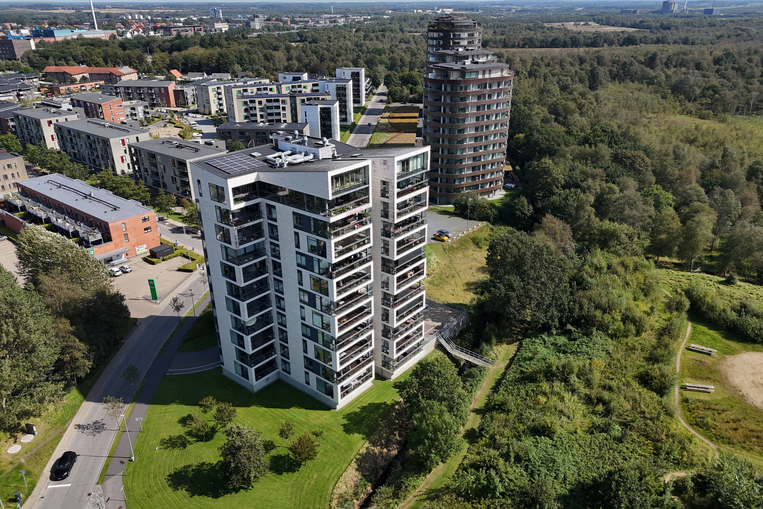Grøndahlsvej er en både bynær og naturskøn adresse, for jer der gerne vil bo i byen, og stadig vil kunne nyde naturen. Foruden Knudmosen, ligger Sdr. Anlæg også tæt på, med hyggelig park, søer og gåstier. Overfor ejendommen, ligger Coop365 så indkøb let kan klares, mens torvet og midtbyen ligger små 10 minutter fra adressen til fods eller på cykel.