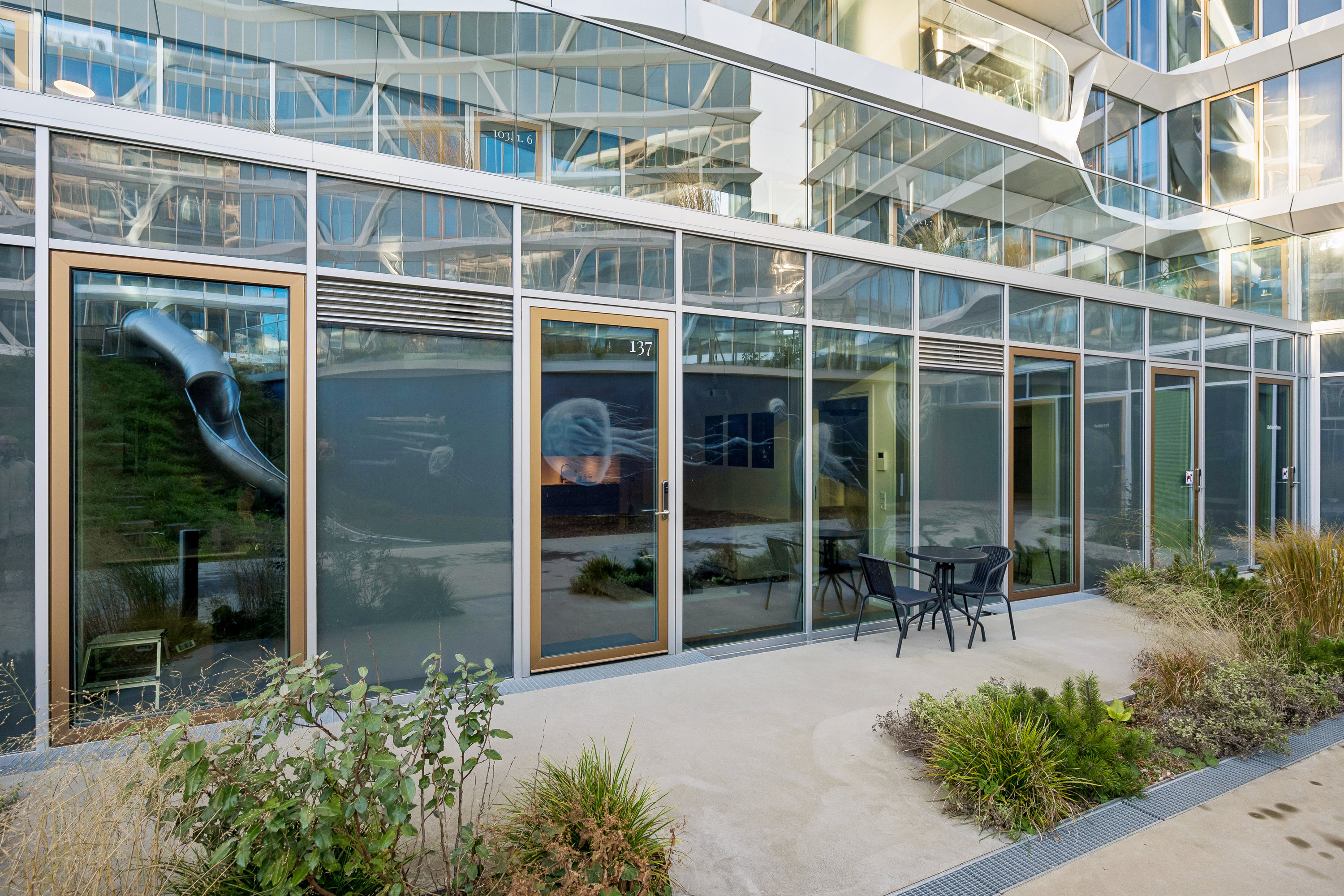 Lighthouse tilbyder unikke fællesfaciliteter, der skaber rammerne for en moderne og komfortabel hverdag. I beboerhuset som ligger ud mod bugten, finder du bl.a. sauna, udebruser, loungeområde, fælleskøkken og gæstebolig med eget toilet. Du kan også nyde det private gårdrum med grow camps til dyrkning af grøntsager, hængekøjer, pavilloner samt grønne oaser fyldt med planter, træer og blomster.