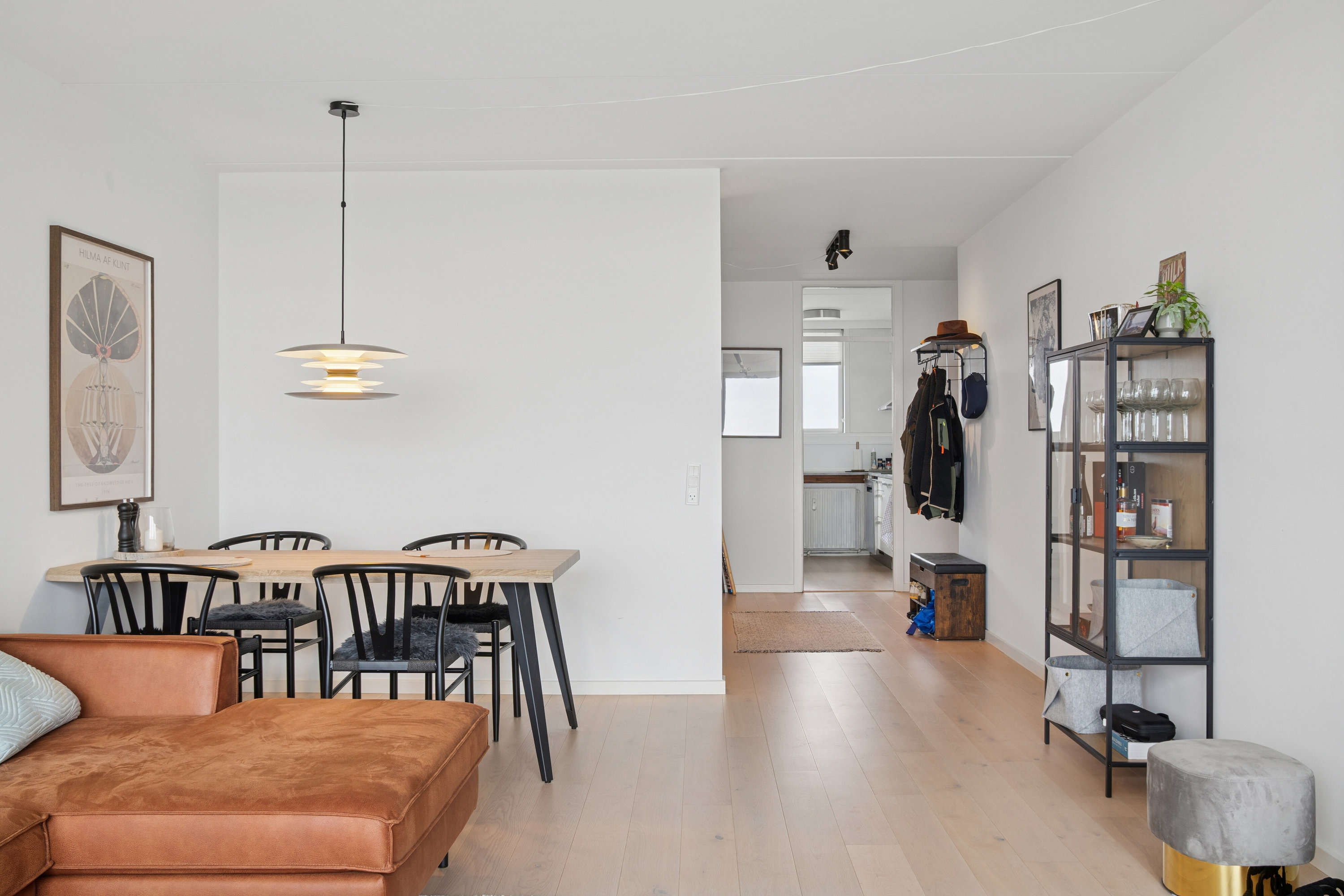 Inden for de seneste år har lejligheden gennemgået en flot gennemgående renovering. Her blev der blandt andet lagt nye gulve, installeret nyt køkken, opdateret badeværelse og vægge blev pudset og filtset – alt udført i lyse og tidssvarende materialer.