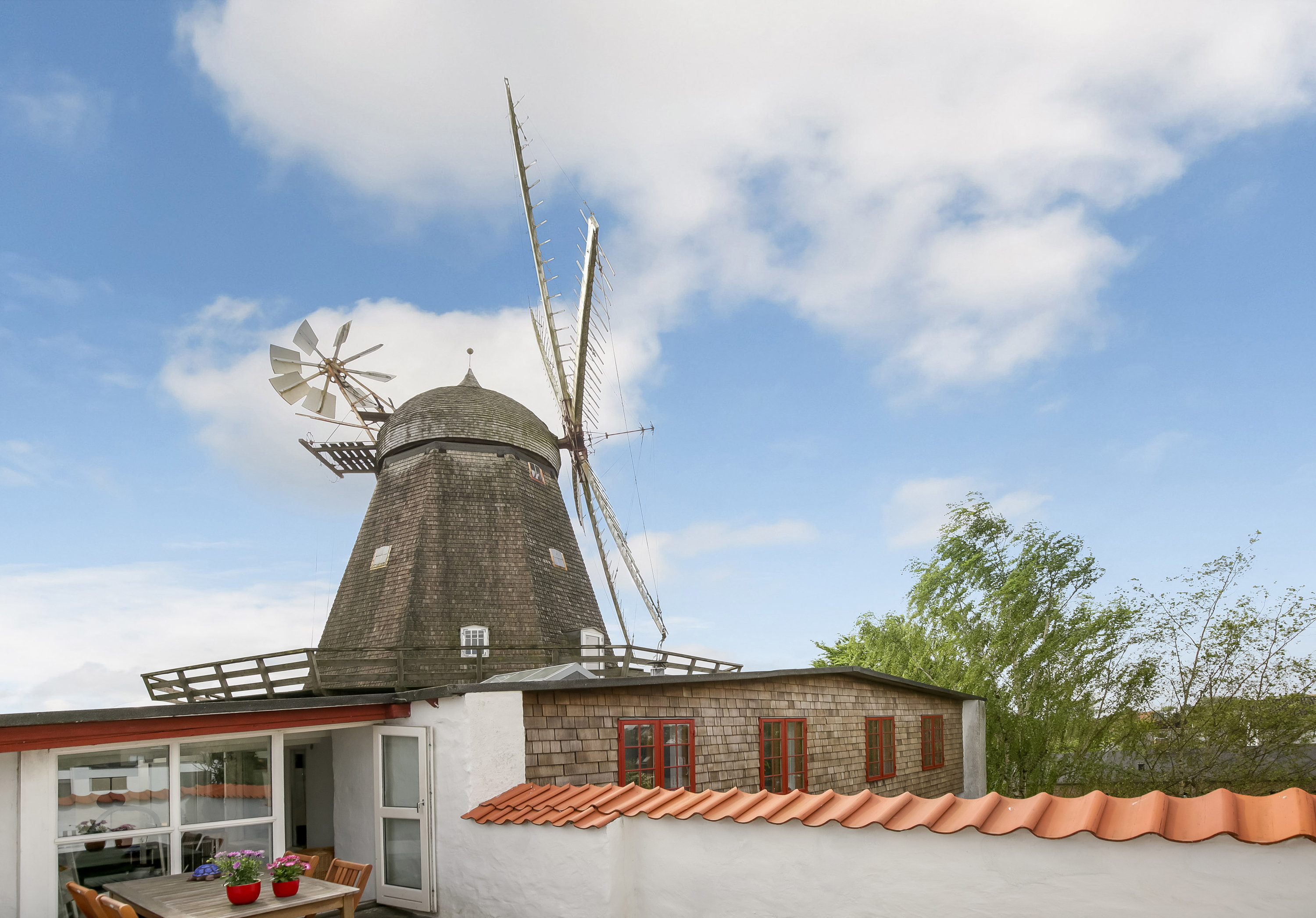 Lejligheden er en del af den gamle mølle og ligger på en 1.469 m² stor grund med adgang til en dejlig fælles have. Boligen består af 177 veludnyttede kvadratmeter, der emmer af sjæl og autentiske detaljer.
