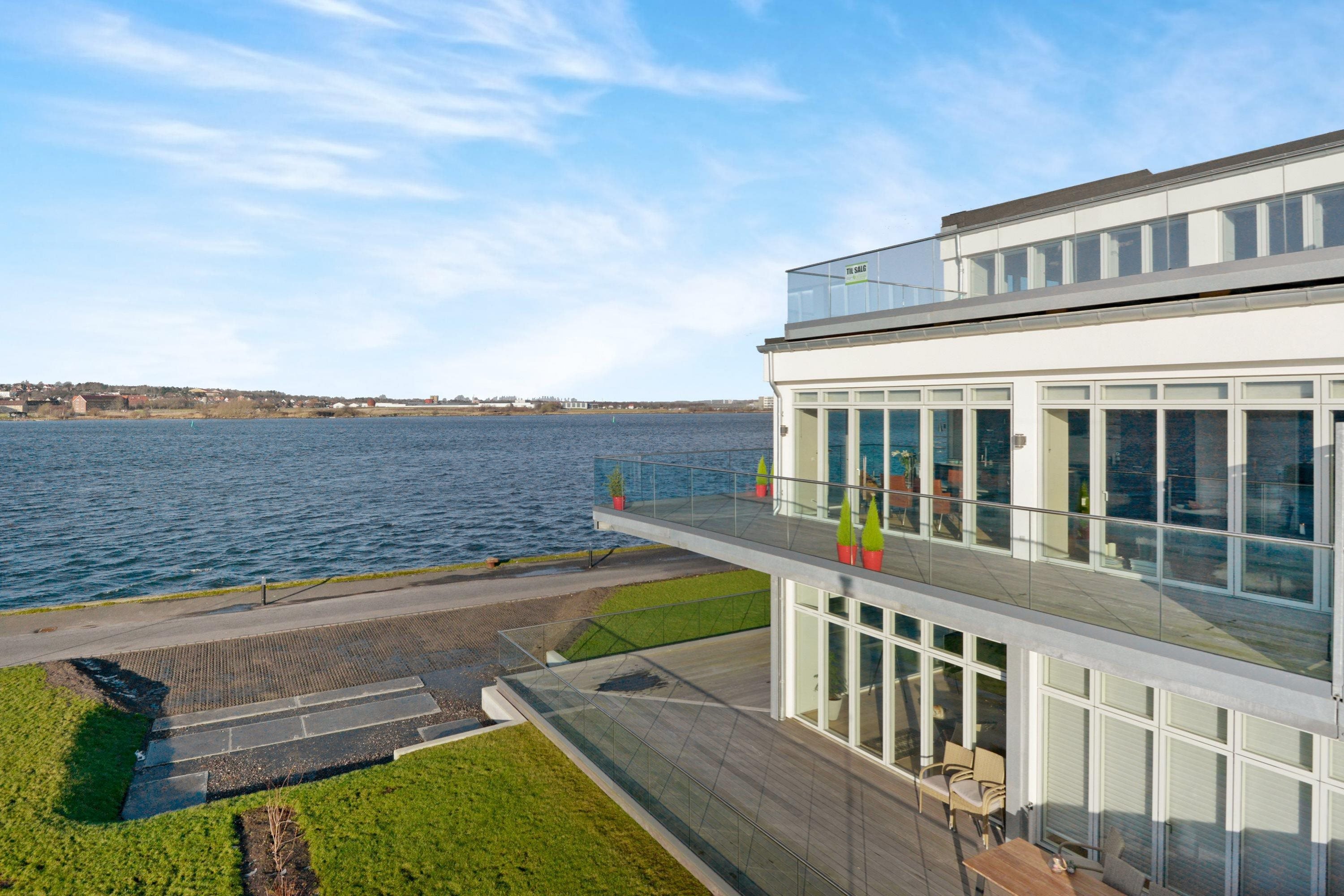 Ejendommen er placeret direkte ved kajkanten med adgang til promenade, grønne fællesarealer og maritime omgivelser. Den ca. 4.655 m² store grund indbyder til gåture og ophold ved vandet, samtidig med at du er tæt på både byliv og moderne faciliteter. Bygningen byder på elevator, cykelparkering og et præsentabelt indgangsparti med høj loftshøjde.