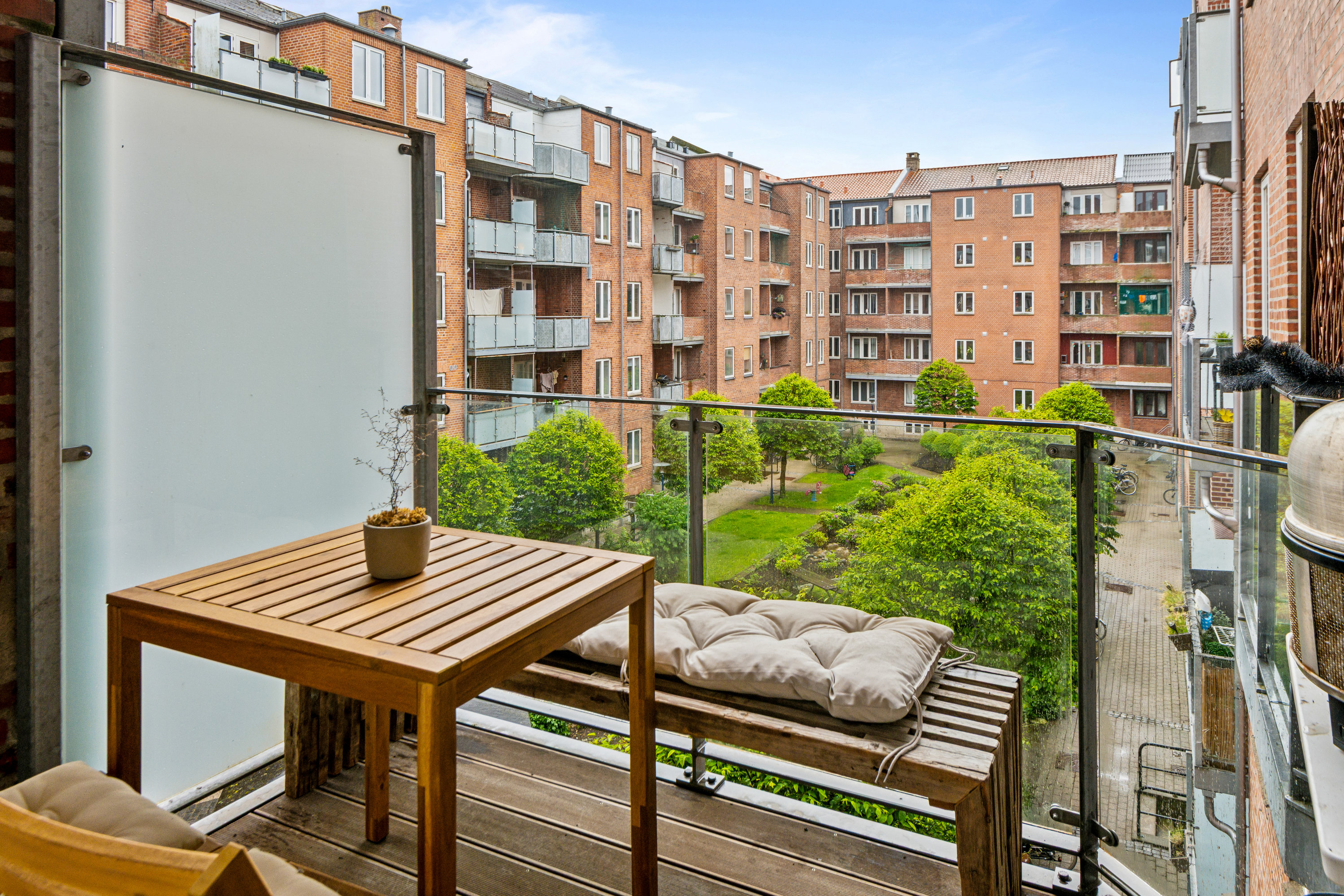 Bag ejendommens mure mødes du af et grønt og stemningsfuldt gårdmiljø, hvor du kan nyde solrige dage og udeliv under åben himmel. Ydermere får du dit helt eget solspot i form af en sydvendt altan med udsigt over gårdens rolige omgivelser. Som en ekstra bonus hører et stort kælderrum med til lejligheden, og det giver dig rigelig opbevaringsplads lige ved hånden.