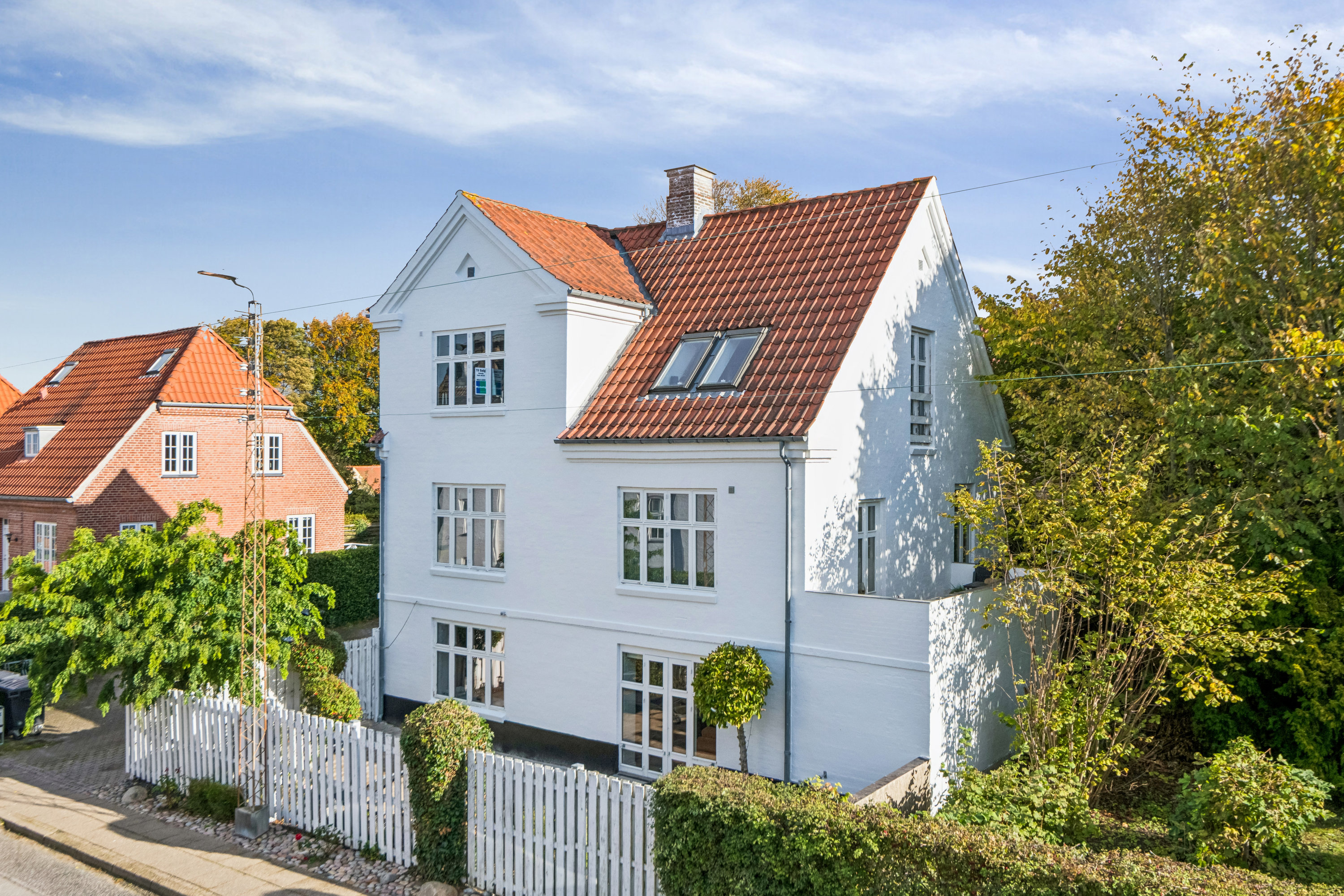 En charmerende ramme. Du får hjemme i en flot, hvid murermestervilla, og du hører hjemme oppe på anden sal under det røde tegltag. Bilen kan parkeres bekvemt på ejendommens parkeringsplads, som du har brugsret til, og cyklen finder sin plads tæt ved hoveddøren. Her finder du desuden en hyggelig solkrog, hvor du kan indrette med cafésæt, mens haven byder på plæne og grøn beplantning.