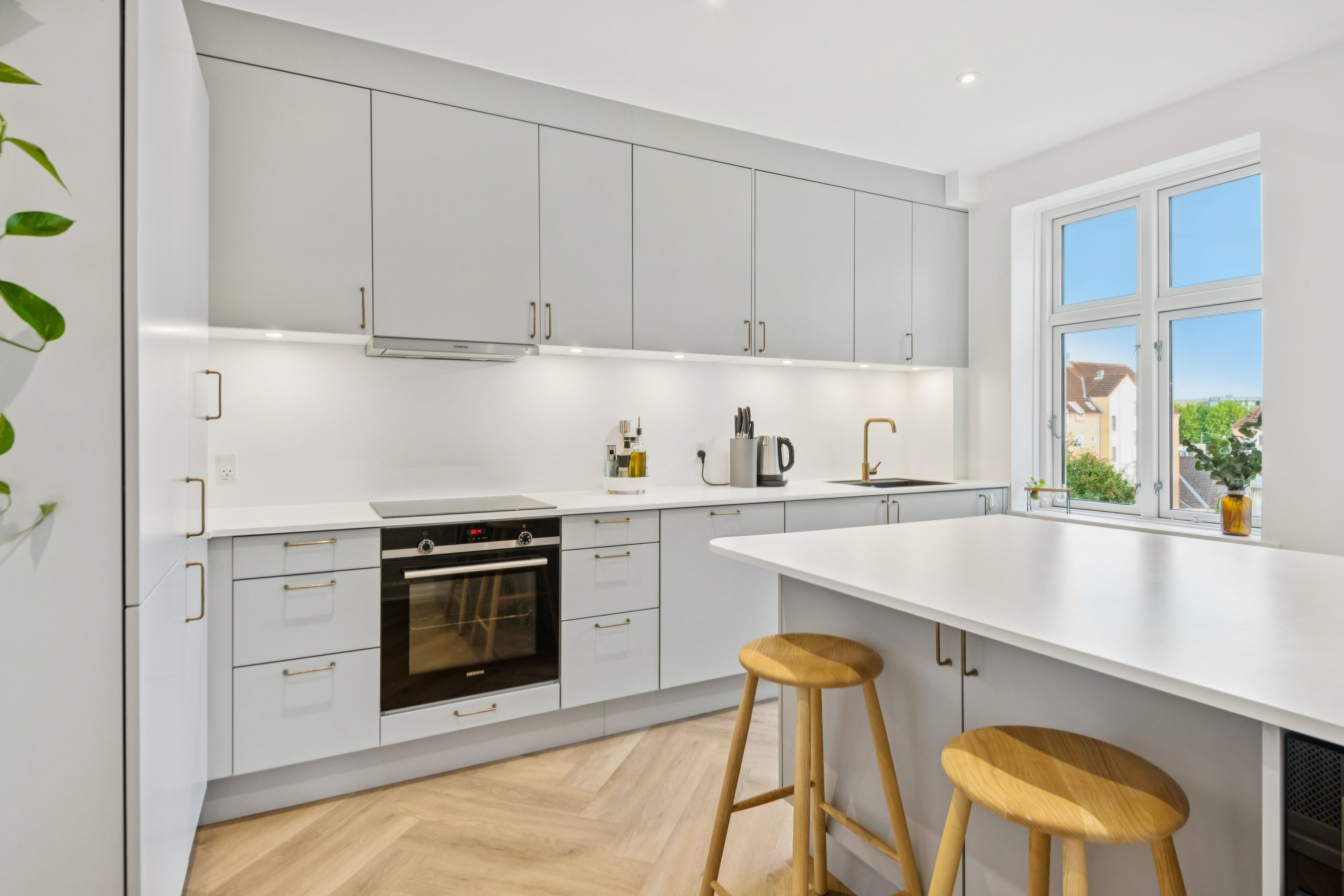 Pladsen fordeler sig helt ideelt over en planløsning uden spildplads, hvor en rummelig fordelingsentré på klassisk vis giver adgang til samtlige rum. I den ene ende er der åben overgang til en stor og lys hjørnestue, mens der i den anden er åbnet op til det flotte og veludstyrede køkken. Boligen blev renoveret i 2023, og her hersker en dejlig sammenhæng i hjemmet, der fuldendes af et toplækkert badeværelse og to store værelser, hvor det ene endda kan opdeles i to. Ja, indretningsmulighederne er i det hele taget mange, og med så flot et udgangspunkt kan det kun blive godt.
