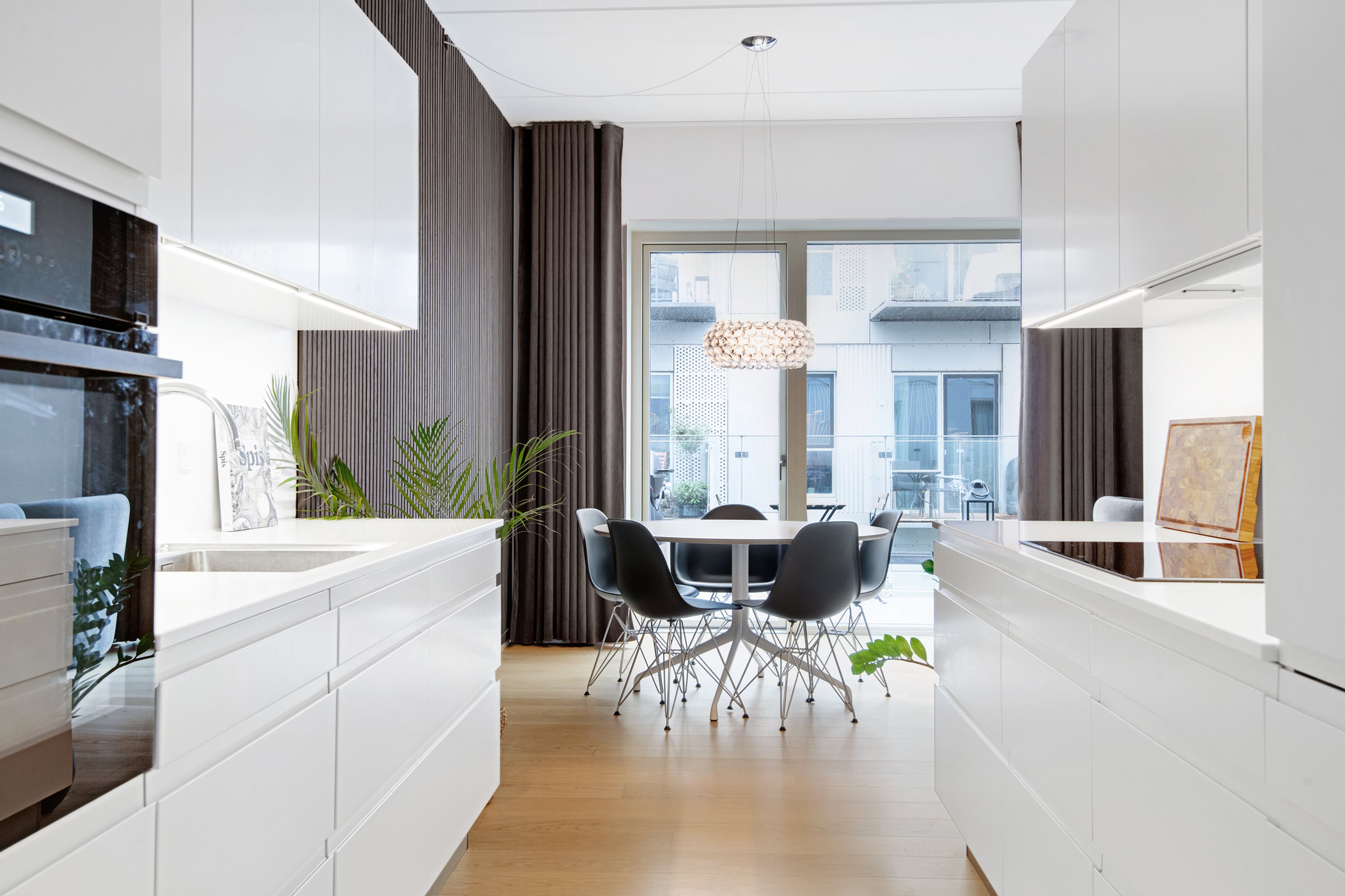 Træd indenfor i dette fedt indrettede hjem med entré, to værelser, stort køkkenalrum, lækkert badeværelse og selvfølgelig altan. Med et lækkert lysindfald, som I ville kunne forvente af en lejlighed på fjerde sal, bliver der ikke skruet ned for noget. De 89 kvm er virkelig godt udnyttet, hvor det store badeværelse eksempelvis er indrettet med separat bruseniche og vaskesøjle ført i en simplistisk stil. Køkkenalrummet især viser sig fra bedste side med store vinduespartier og lækkert køkken - og begge værelser har også store vinduespartier, der giver et behageligt lysindfald. Dette bliver da forklaret af den dejlige altan, her er at finde, hvor I kan nyde udsigten til fjorden. Denne bolig er altså til jer, der ønsker et hjem, I kan finde jer tilpas i med det samme. Nu kan I slappe af!