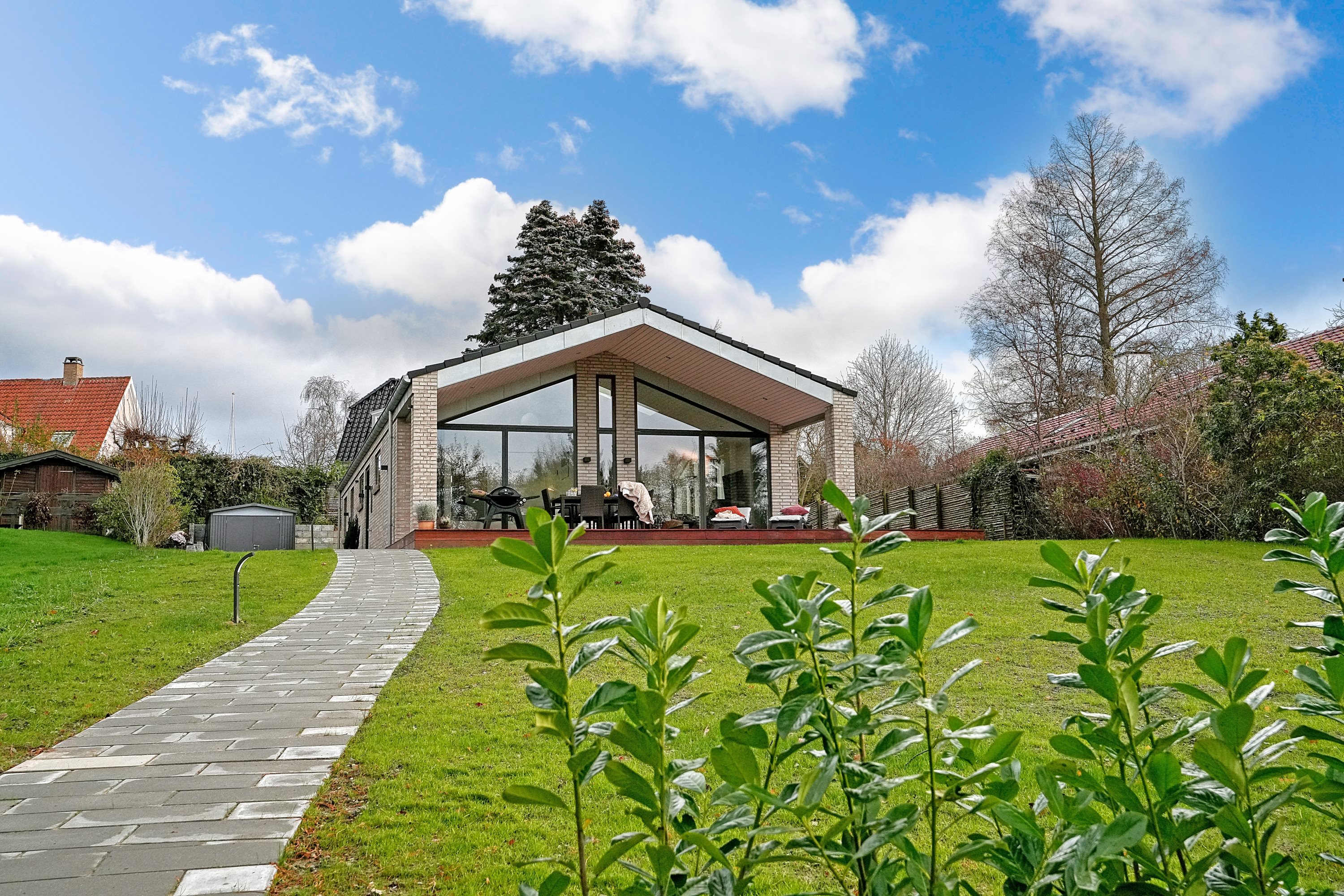 Haven er anlagt med et minimum af vedligeholdelse for øje. Udhæng på taget skaber naturlig overdækning på den store, stemningsfulde terrasse, hvor I får plads til at indrette jer i flere afdelinger med både langbord og loungemøbler. Praktiske flisegange fører fra indkørsel op til huset og fortsætter rundt om huset, hvor flisebelægningen breder sig ud i endnu en skøn terrasse.
