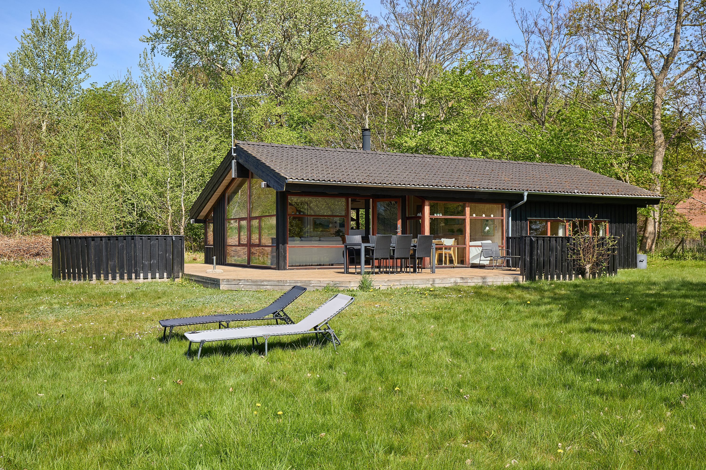 Sommerhuset er lyst, indbydende og klar til brug fra første dag. Indretningen er praktisk og de 89 kvm. er rigtig fint udnyttet. Sommerhuset består af entré, 3 rummelige gode værelser, 2 badeværelser - det ene med spabad og sauna, hems, samt skønt åbent køkkenalrum og opholdsstuemiljø i ét. Her er flotte trægulve, store vinduespartier i mahogni, loft til kip, brændeovn, plads til såvel spisebord som sofaarrangement og udgang til stor dejlig sydvest-vendt træterrasse, hvor solen kan nydes fra morgen til aften.