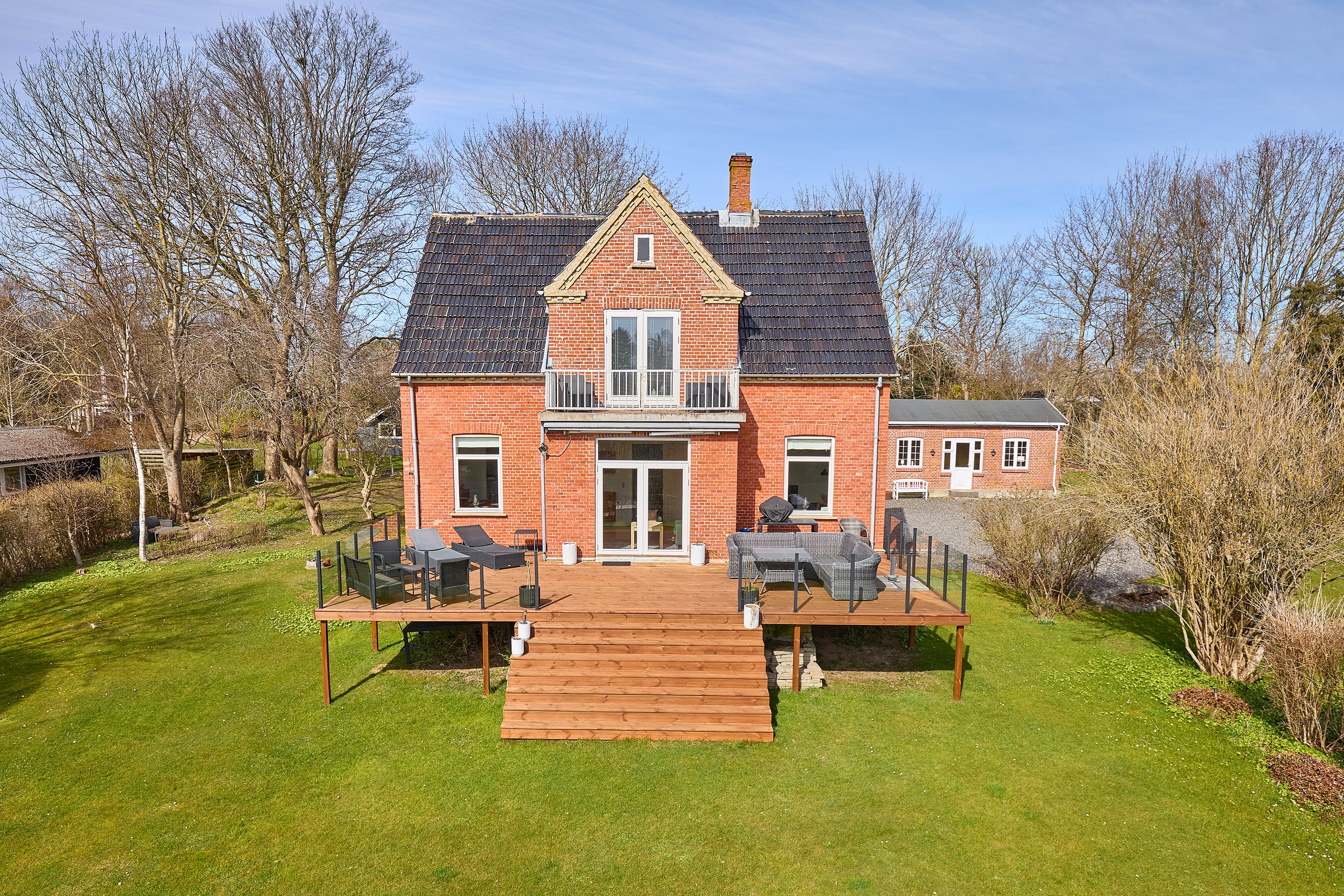 Udenfor venter en smuk grund på 2.276 kvadratmeter, hvor naturen virkelig kan nydes. Den velplejede have inviterer til leg, afslapning og skønne stunder i solens skær. Den store terrasse, der strækker sig fra huset, bliver et naturligt samlingspunkt, hvor I kan nyde de lange sommeraftener med venner og familie, alt imens I beundrer den betagende udsigt over det omkringliggende landskab.