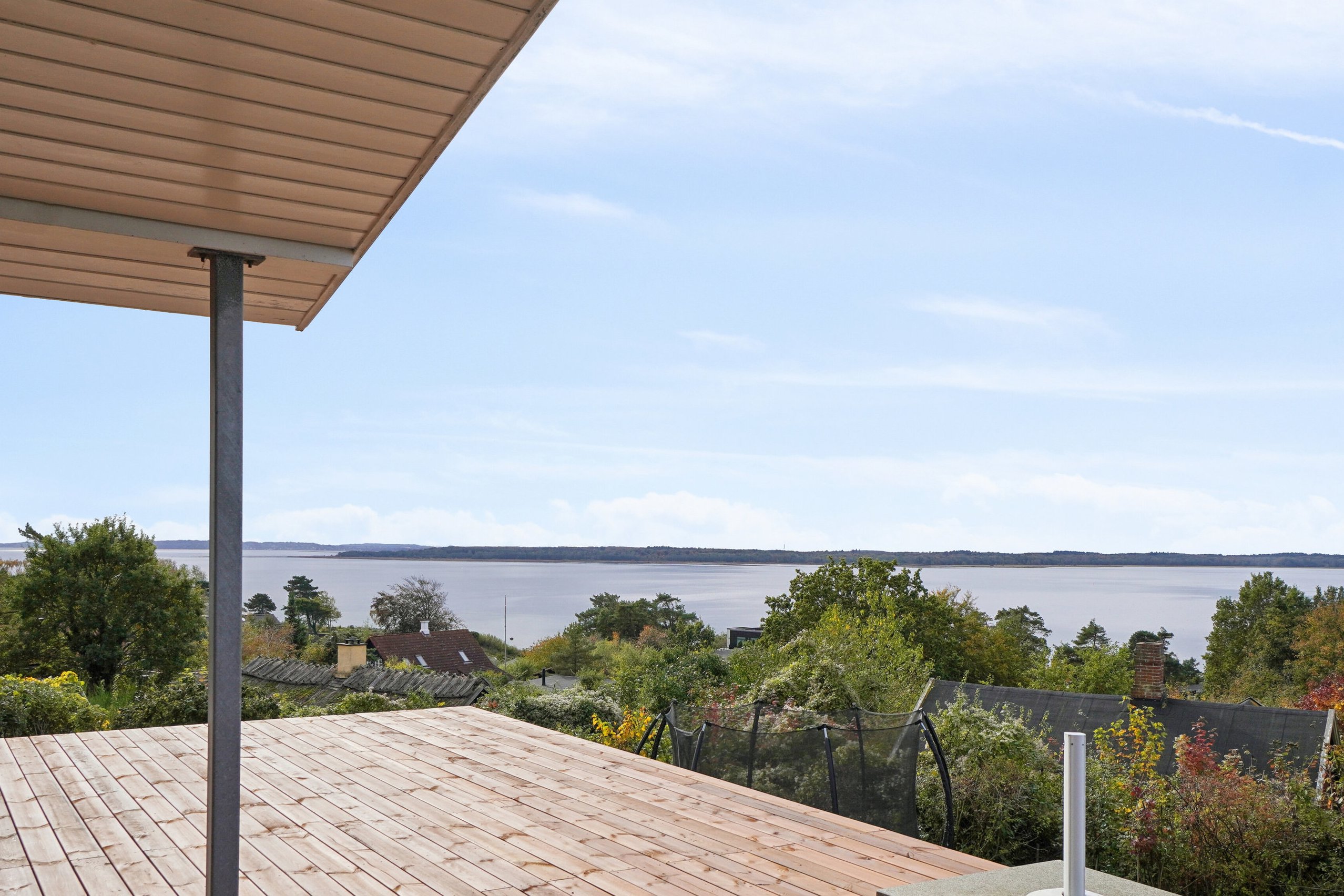 Allerede når I drejer ind i indkørslen, mødes I af den imponerende udsigt over fjorden, som kan nydes fra samtlige rum i huset. Huset fremstår superflot, indbydende og gennemført i alle detaljer, og det er i høj grad egnet til helårsbeboelse. Indretningen byder på en stor entré, gæstetoilet, et rummeligt badeværelse med brusekabine, to gode værelser og et stort walk-in closet. Fra stuen er der trappe ned til kælderen, som fremstår høj, tør og meget anvendelig med tre disponible rum.