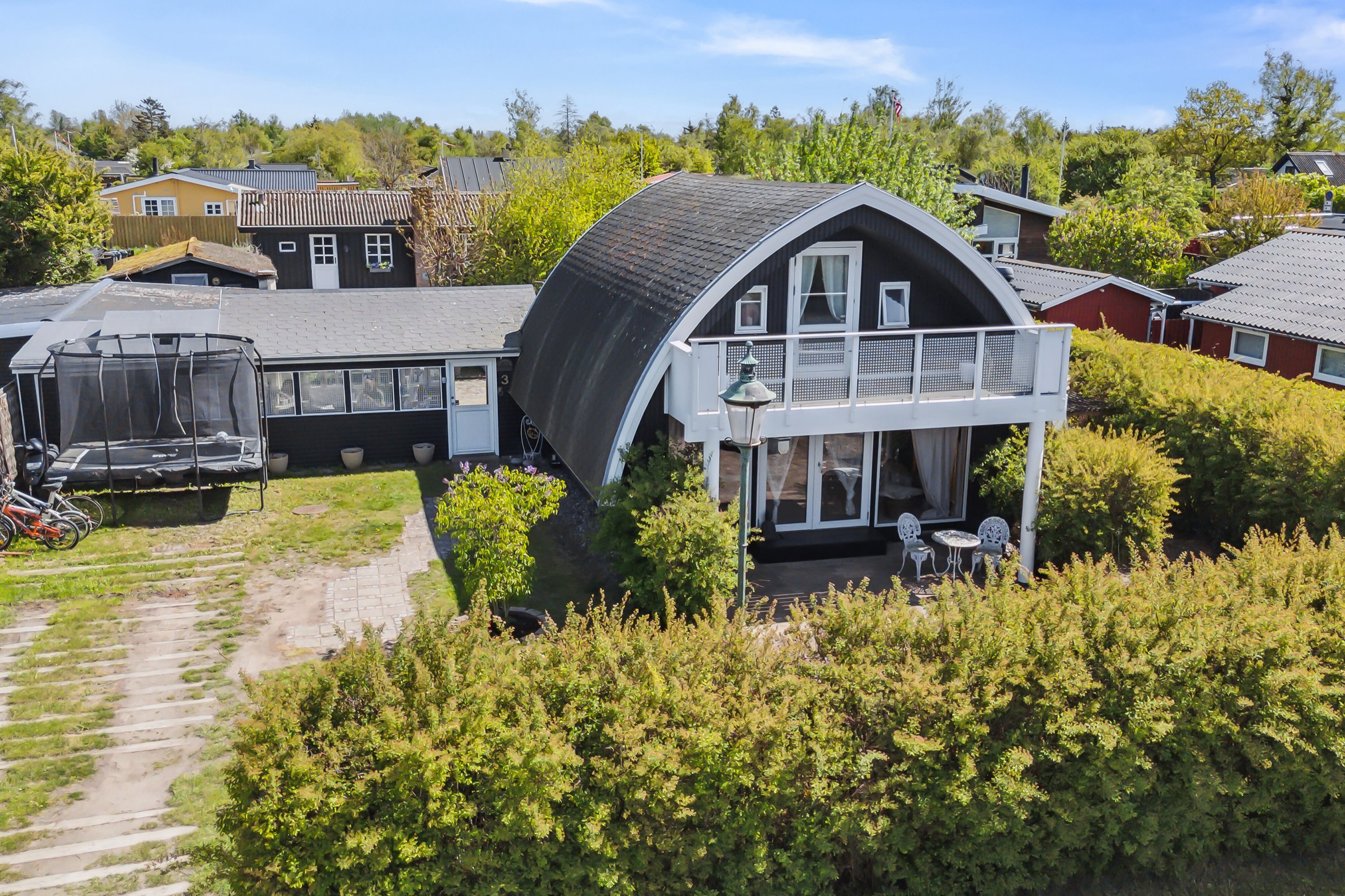 At sommerhuset minder om et skib skyldes, at det er bygget op om en amerikansk hal, der blev hentet hjem fra USA. Omkring huset er der ugenerede terrassemiljøer, hvor I altid kan finde en plads i solen eller skyggen.
