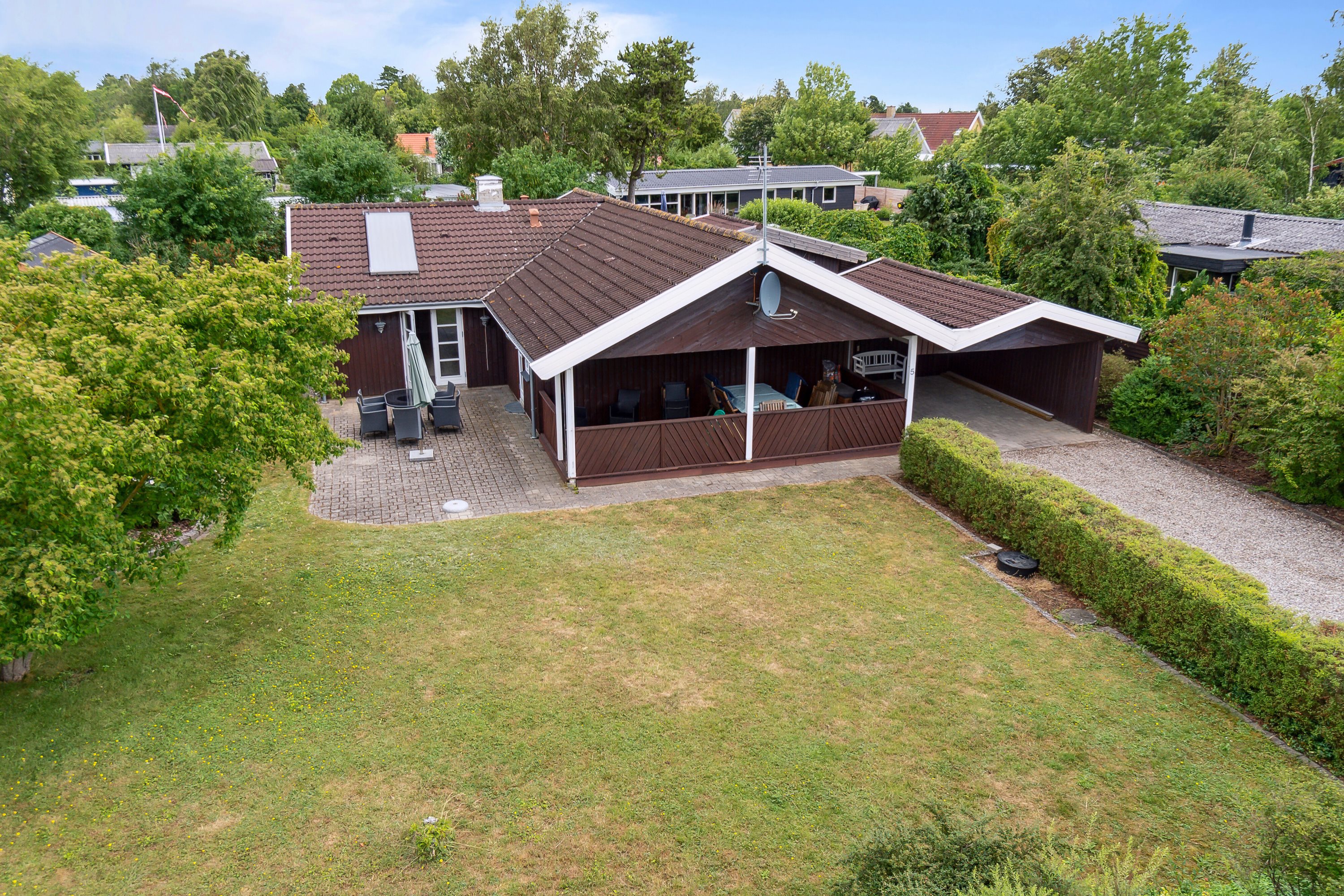 Ejendommen ligger godt tilbagetrukket på grunden, og I skal således et stykke ind, før I rammer carporten, der er udført i forening med huset. Således kan I altid nå tørskoet fra bilen og inden døre med dagligvarerne. Tag en tur rundt i den skønne have, som er aldeles ugeneret og består af et væld af terrasser, som breder sig fra øst til vest. Her kan I rigtig nyde solens varme stråler fra morgen til aften og indtage både morgenkaffen og dække op til middag under åben himmel. Børn og barnlige sjæle vil elske haven, hvor alt fra vandkamp og kongespil til vejrmøller og kapløb får glimrende betingelser. Der er også et fint anneks samt et disponibelt rum til haveredskaberne.