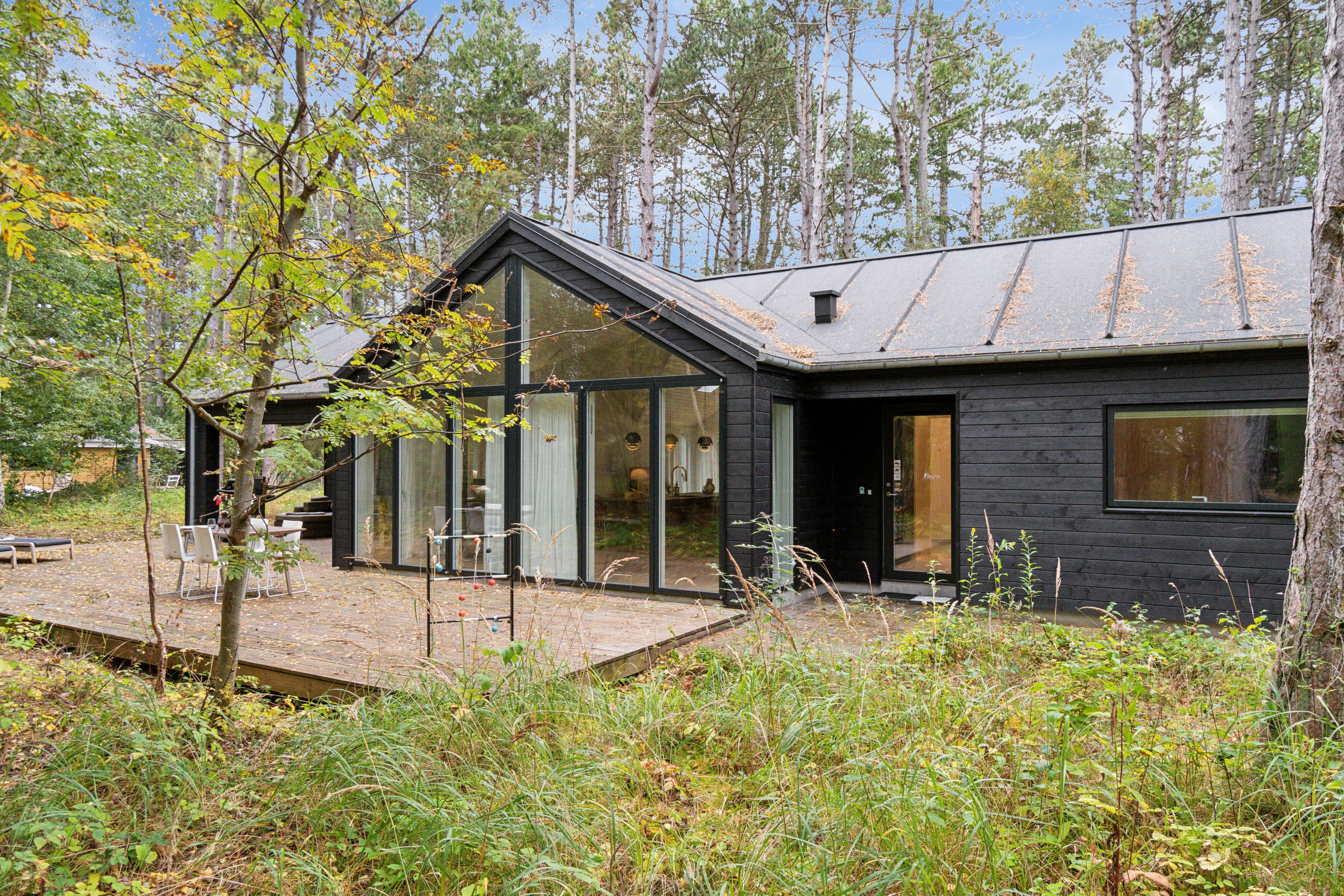 Rådyrene føler sig trygge i området, og det sker derfor ofte, at deres brune øjne og spinkle ben finder vej helt ind på matriklen. Ellers er I bare helt jer selv her i haven, der ligger som en lysning i skoven. Terrassen strækker sig rundt om hele huset og tilbyder de perfekte rammer for uforglemmelige sommerfester.