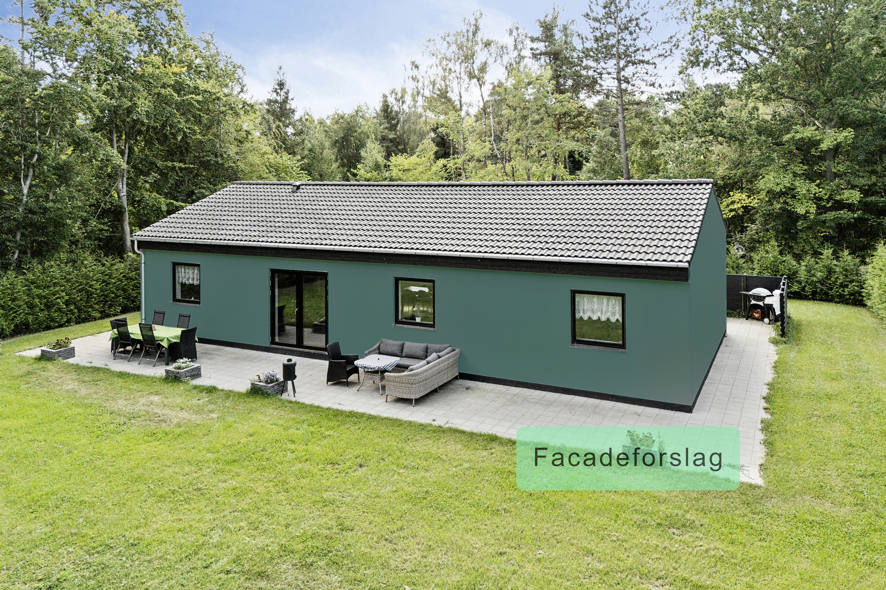 På egen matrikel venter en 1.231 m2 stor grund, der er tæt omkranset af bevoksning og træer, som skærmer behageligt af og sikrer jer privatliv. Dette nyder I helt sikkert på den omfangsrige terrasse, der følger huset hele vejen rundt og således lader jer fange solstråler hele dagen. Imens kan børnene boltre sig på græsplænen, hvor der også er opsat shelter og bålplads. På grunden finder I også et udhus, der eksempelvis kan bruges til opbevaring af haveredskaberne.