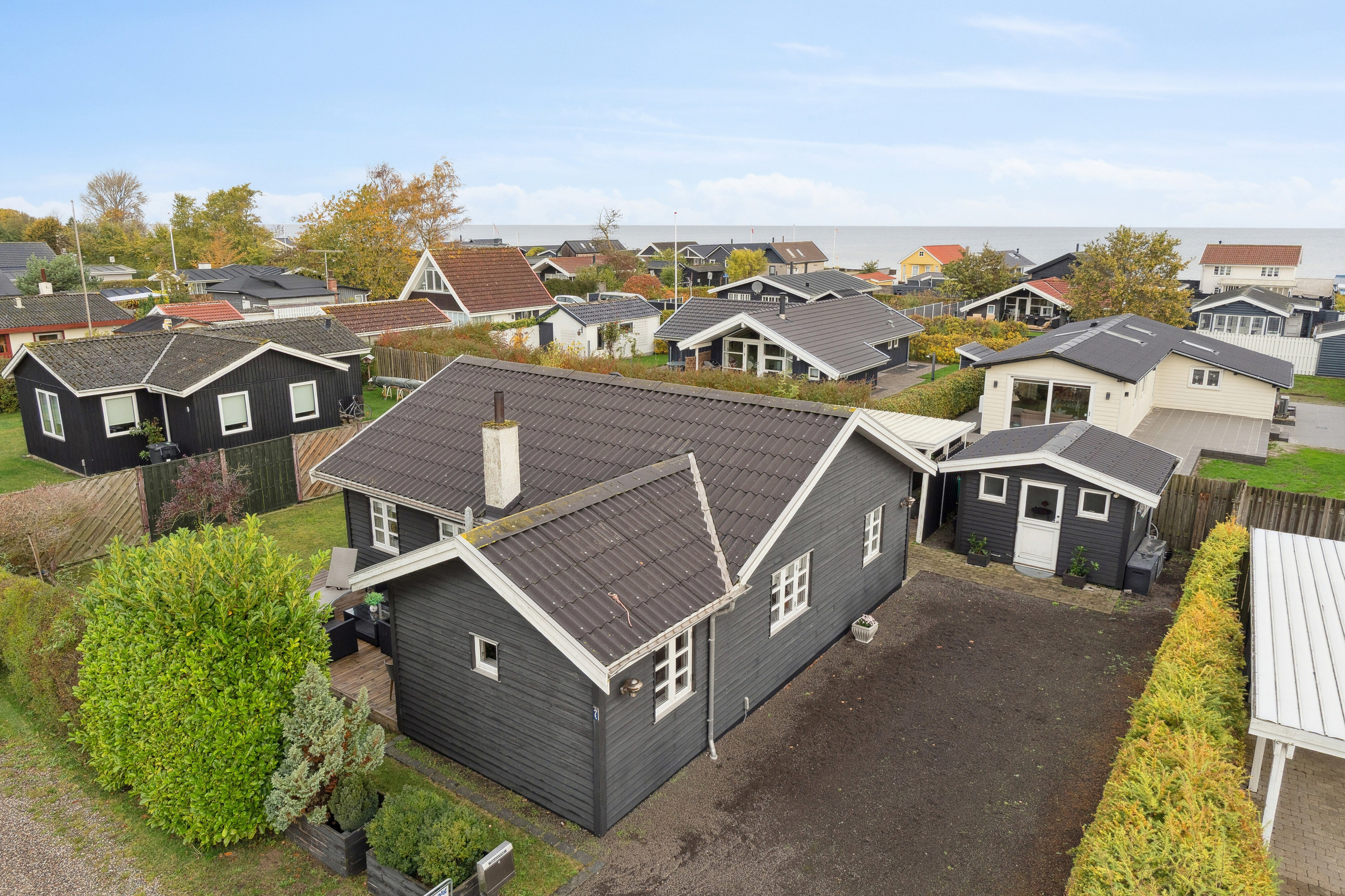 Ved ankomsten møder du en sortmalet træfacade og god parkeringsplads ved indkørslen. Første indtryk er et funktionelt sommerhus med gennemført træbeklædning både indvendigt og udvendigt. Indenfor er planløsningen enkel og overskuelig med et åbent alrum, hvor køkken, spiseplads og ophold smelter sammen. Store vinduer og glasdør mod haven sikrer et stabilt lysindfald i stuen, og loftsbeklædningen i lyst træ giver en sammenhængende følelse. Køkkenet er praktisk indrettet med arbejdsplads på begge sider, mens badeværelset rummer bruseniche samt plads til vaskemaskine og tørretumbler. Entreen fungerer som gennemgang til husets rum. Gode værelser. Særlige fordele er den usædvanligt store terrasseløsning med både åbne og overdækkede arealer, som udvider boligens kvadratmeter i sommerhalvåret. Terrasserne vender mod haverummet og skaber mulighed for morgenkaffe i sol eller aftensmad under tag ved regn. Haven er afskærmet af beplantning, hvilket giver privatliv, og skuret på grunden kan bruges som værksted, redskabsskur, ekstra opbevaringsrum eller noget helt andet. Boligen egner sig til både weekendophold og helårsbrug for dem, der ønsker en lavpraktisk bolig med fokus på udendørsliv. Huset ligger i et område med rolige omgivelser, og den kompakte grund kræver begrænset vedligehold. For købere, der prioriterer enkel adgang til udearealer og praktisk indretning frem for store kvadratmetre, leverer denne ejendom en klar økonomisk og funktionel løsning. Sammenfattende får du et velholdt fritidshus på 67 m² med god udnyttelse af både inde- og udearealer, to soveværelser, praktisk køkken, bruserum med vaskefaciliteter samt omfattende terrassemuligheder og skur til opbevaring. Kontakt os for en fremvisning og oplev, hvordan planløsningen og udearealerne fungerer i praksis — book tidspunkt og kom forbi.