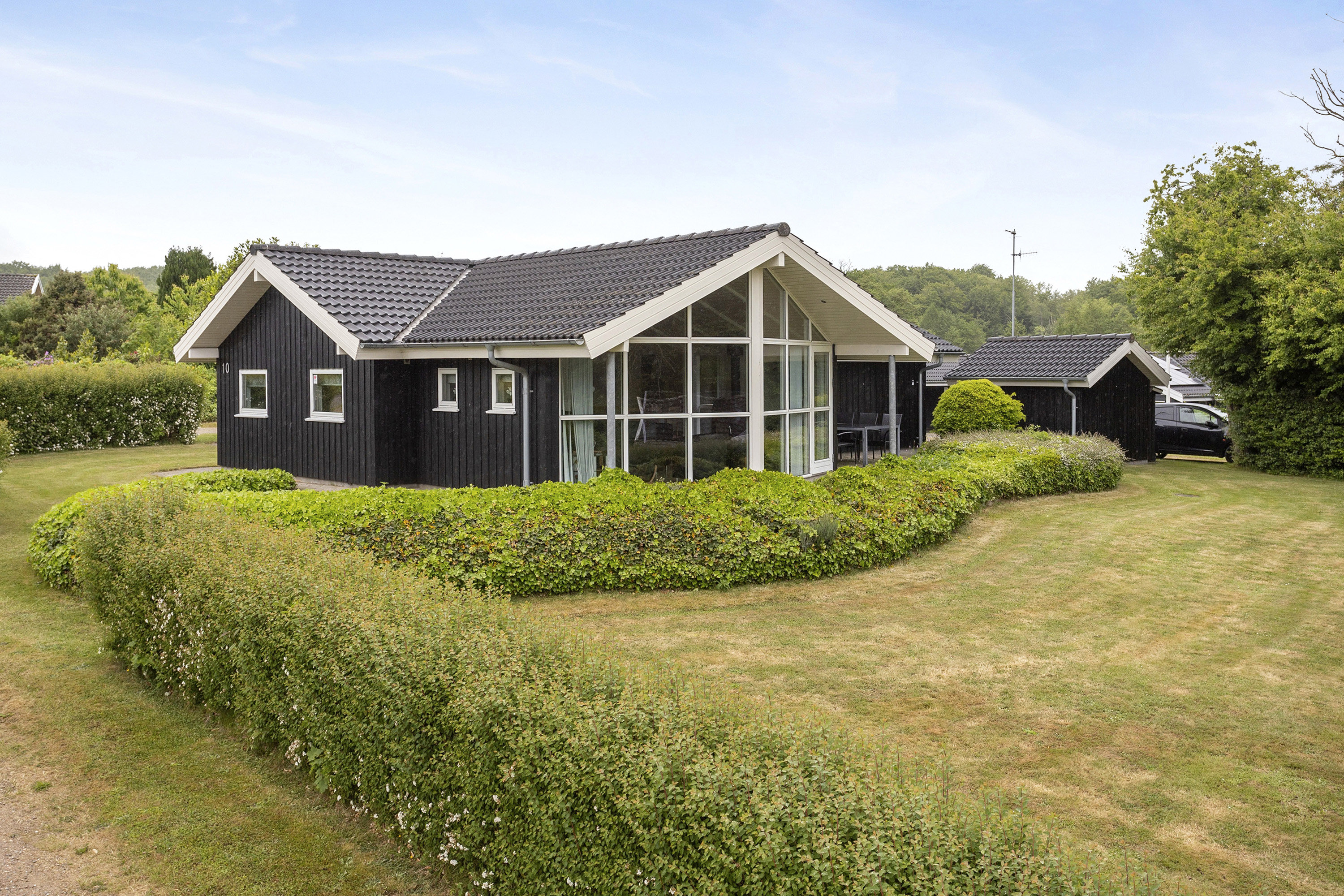 Den frodige have tilbyder privatliv og ro, og er perfekt til leg for børnene eller til afslapning i naturen. Dette fritidshus er en oase, hvor livskvalitet og hyggelige stunder går hånd i hånd.