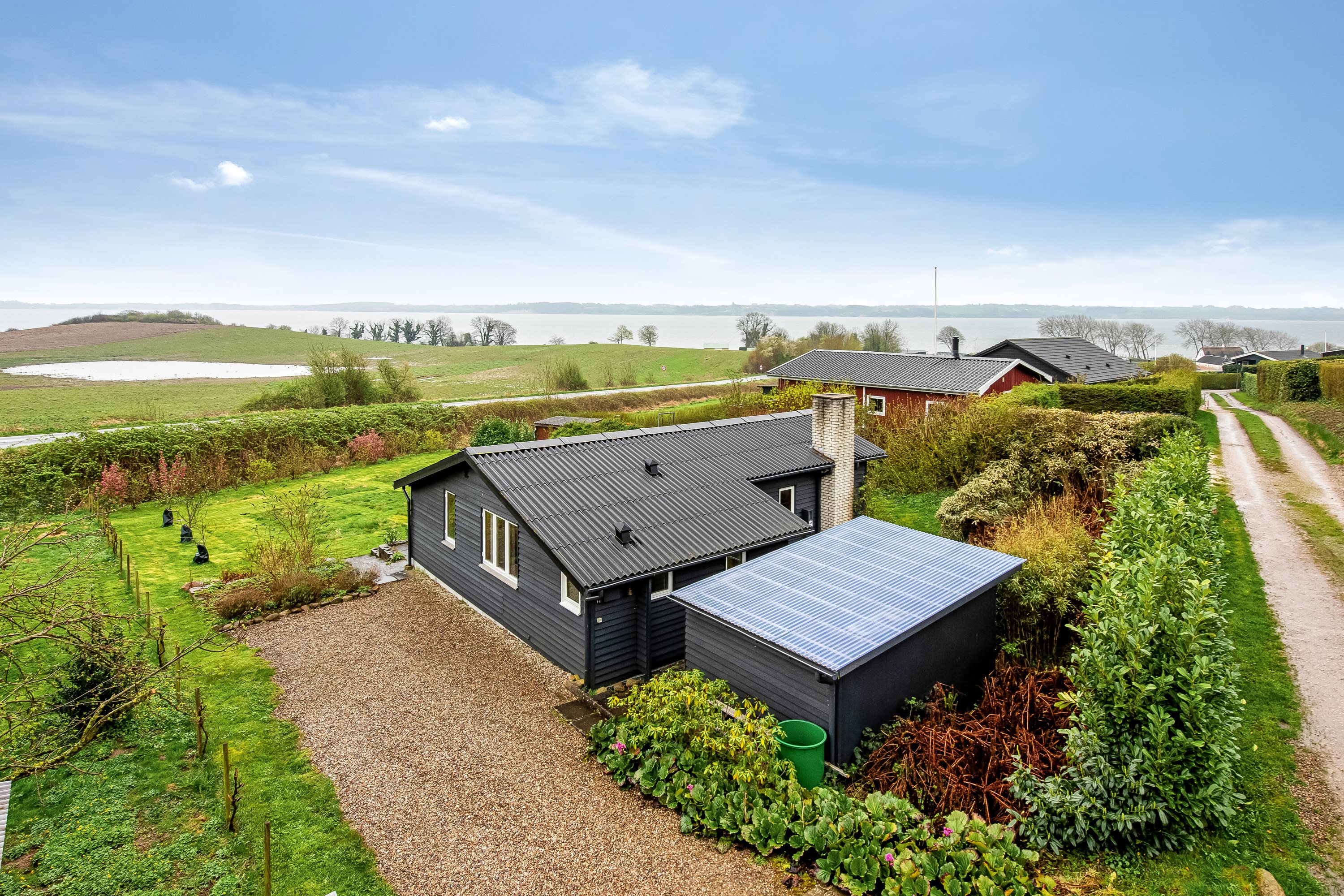 På en stille vej i det attraktive sommerhusområde Skarrev ligger dette fritidshus med en skøn udsigt over Aabenraa Fjord og de kuperede marker. Huset ligger let hævet på grunden, hvilket giver et flot vue til vandet fra både terrasse og opholdsrum. Grunden er anlagt med en nem og overskuelig have med delvis biodiversitet, som kræver minimal vedligeholdelse, og foran huset breder en god træterrasse sig – perfekt til sommerdage med udsigt og ro.