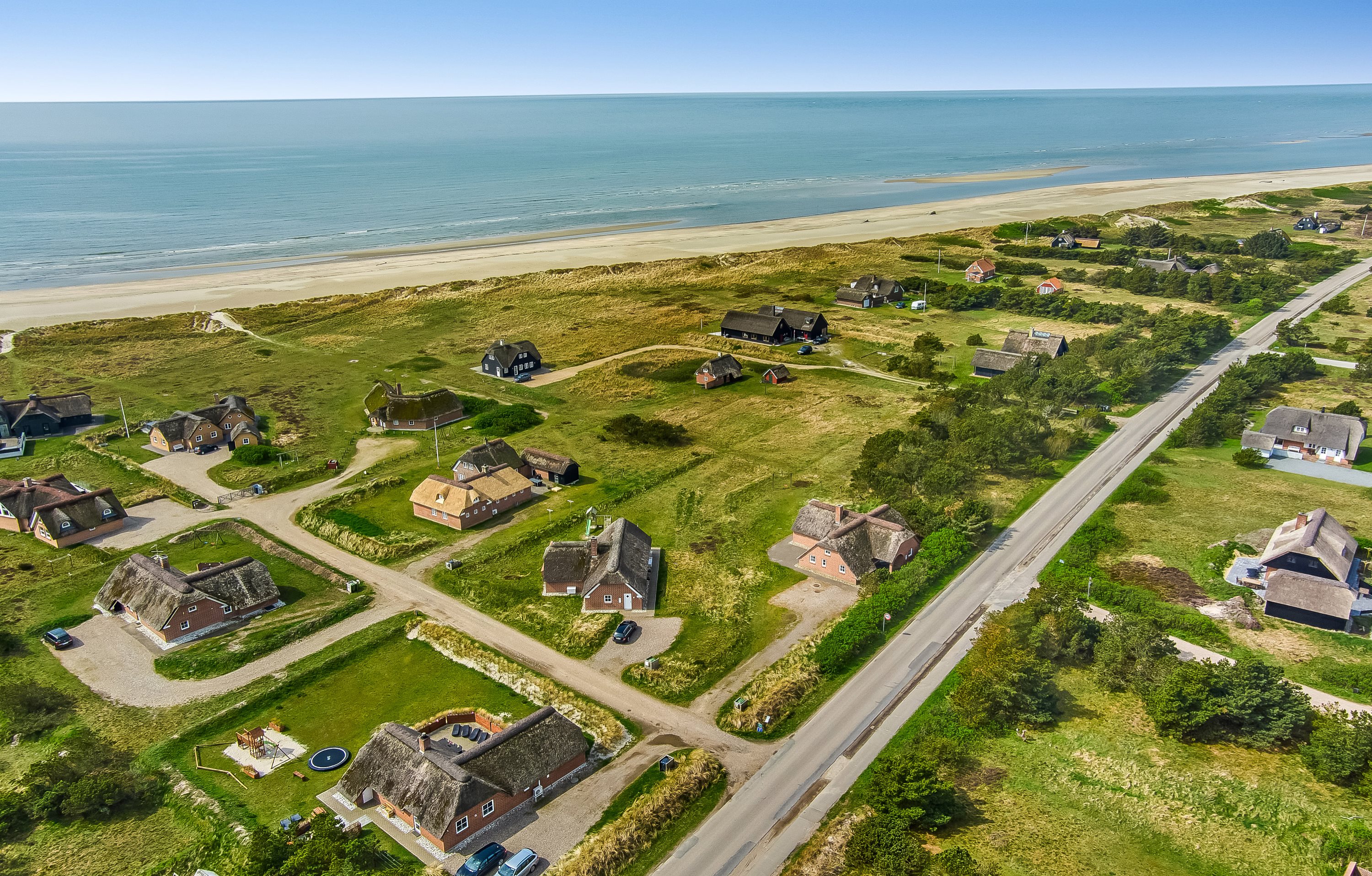 Beliggenheden ca. 200 m til den brede hvide sandstrand er ideelt for Jer med små børn som gerne bare vil hoppe i klipklapperne og tage spand og skovl under armen og begive Jer af sted. Turen til stranden går via en lille sti så her kan poderne sagtens løbe i forvejen uden at man behøver være bange for trafikken.