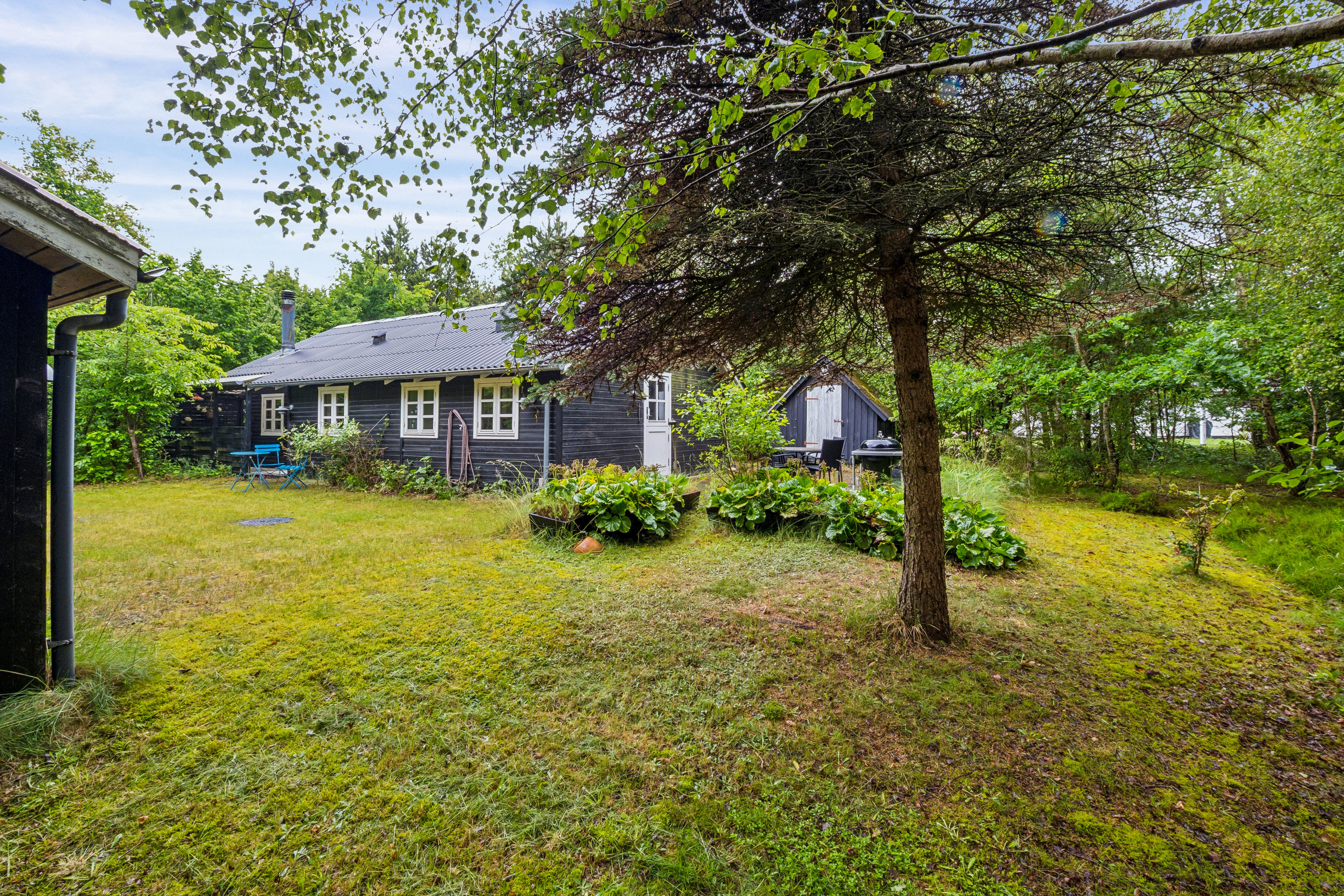 Det er blevet tid til, at en ny familie skal skabe skønne ferieminder i rammerne af dette hyggelige sommerhus tæt på Virksund Strand – skal det være jer? Her kan I overtage et charmerende træhus og en stor, grøn have kun fem minutters gang fra fjorden. I kommer kørende ad nogle rolige sommerhusveje, før I drejer ind på grunden, der folder sig ud med 2.655 m2 og en masse grønt til øjet. Høje, flotte træer indrammer grunden og sørger for privatlivet i den dejlige have, hvor I finder flere terrasser og hyggekroge. En fliseterrasse ligger på husets ene side, mens en stor, overdækket terrasse ligger på den anden; sidstnævnte bliver en fast base, et ekstra opholdsrum, i sommerhalvåret. På grunden er der derudover gjort plads til flere udhuse, en carport og en garage på 60 m2 opført i 2019 – og med så stor en garage mangler I ikke plads til hverken bil, grej eller gør-det-selv-projekter. Huset er klassisk, charmerende og velholdt. Det præsenterer sig med en sortmalet træfacade og småsprossede vinduer for det helt rette udtryk. Også indendørs er charmen bevaret i takt med løbende opdateringer, som efterlader jer et lige dele hyggeligt og indbydende hus. I får bl.a. et pænt badeværelse med brus og to værelser, hvoraf det ene har plads til dobbeltsengen, mens det andet er indrettet med en køjeseng. Når I samles, bliver det i det dejlige opholdsrum, hvor træværket og brændeovnen bidrager til den varme atmosfære. Et køkken med klassiske fyldningslåger byder bl.a. på alt i hårde hvidevarer, og fra halvøen er der frit udsyn over spiseområdet og stuen, hvor man straks får lyst til at slå sig ned med en god bog i en blød sofa. Jeres nye fristed indrammes af fred, ro og al den smukke natur, der kendetegner Nordfjends. Virksund er et dejligt sted at feriere, for det gamle fiskerleje byder på både en god badestrand, flotte gåture og et havnemiljø med atmosfære; og på havnen kan I lade jer friste af en is eller en frokost. Alt det ligger under 30 min. i bil fra Skive og Viborg.