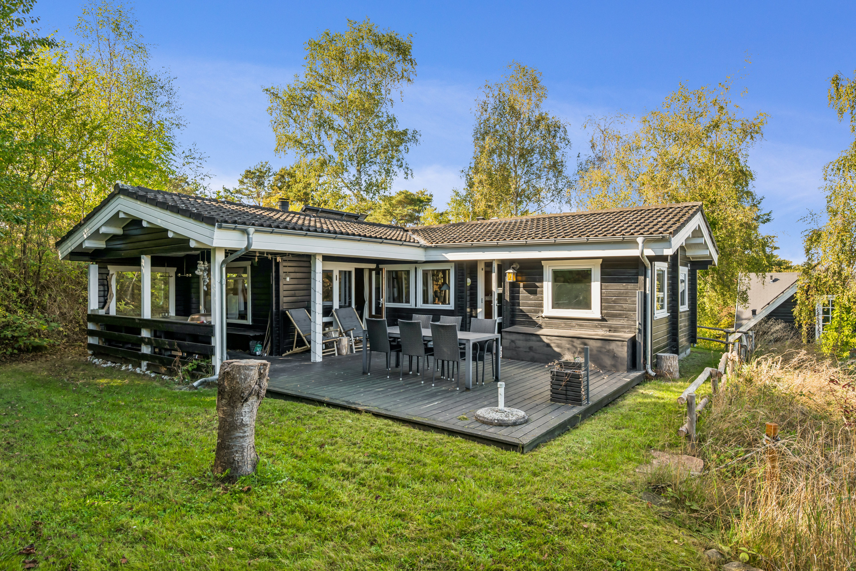 Højt i det bakkede område ved Boeslum Strand finder vi dette charmerende fristed. Huset er opført i den helt rigtige stil med sortmalet facade og hvide vinduesrammer. Her er fokus på charme, beliggenhed og sommerhusstil.