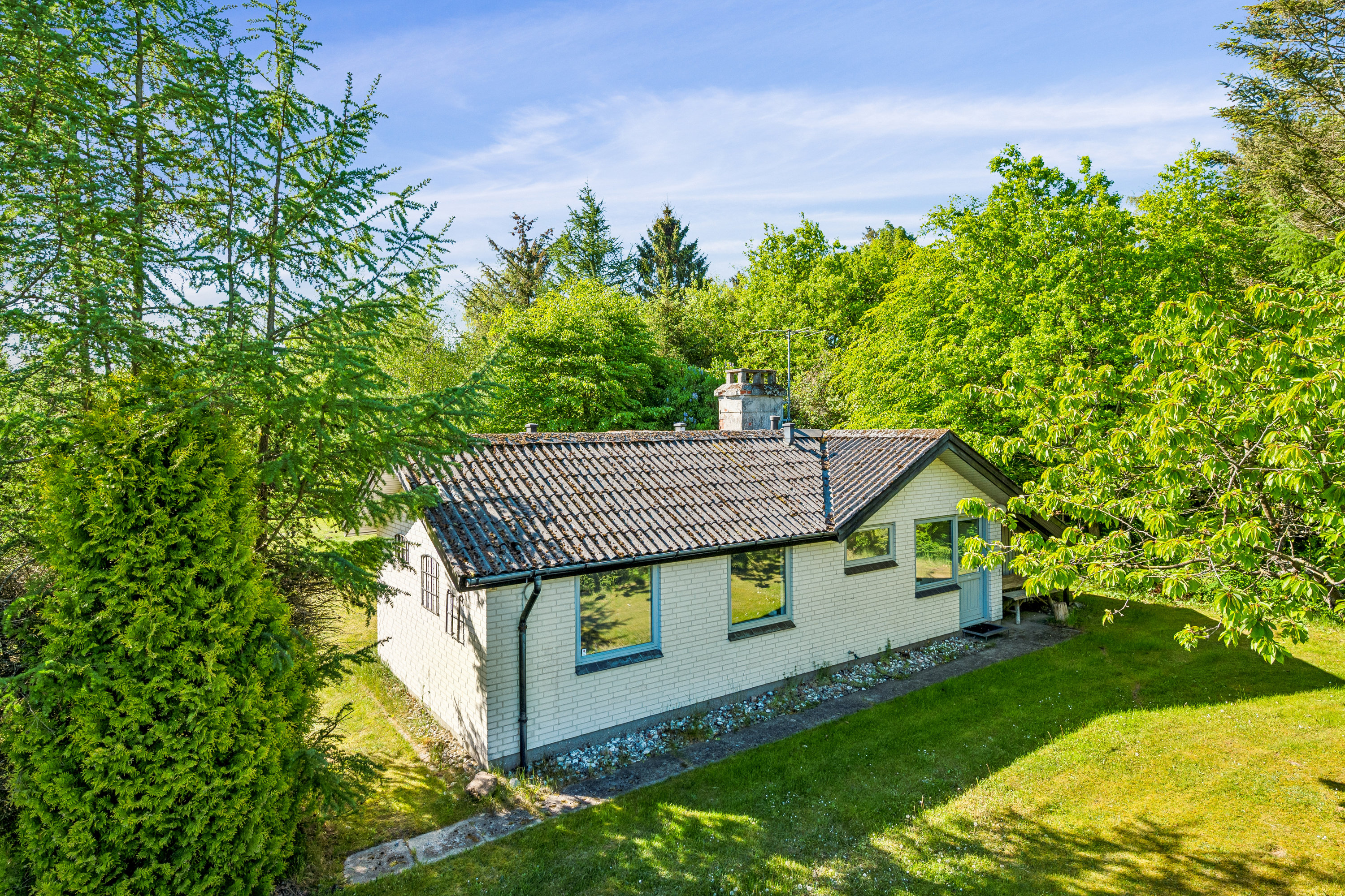 Huset indeholder to værelser samt et disponibelt rum. Badeværelset er pænt og lyst, og køkkenet er nyere og praktisk indrettet i delvis åben forbindelse med stuen. I stuen oplever du en dejlig rumfornemmelse med loft til kip samt udgang til en skøn terrasse, hvor du kan nyde solen og de naturskønne omgivelser.
