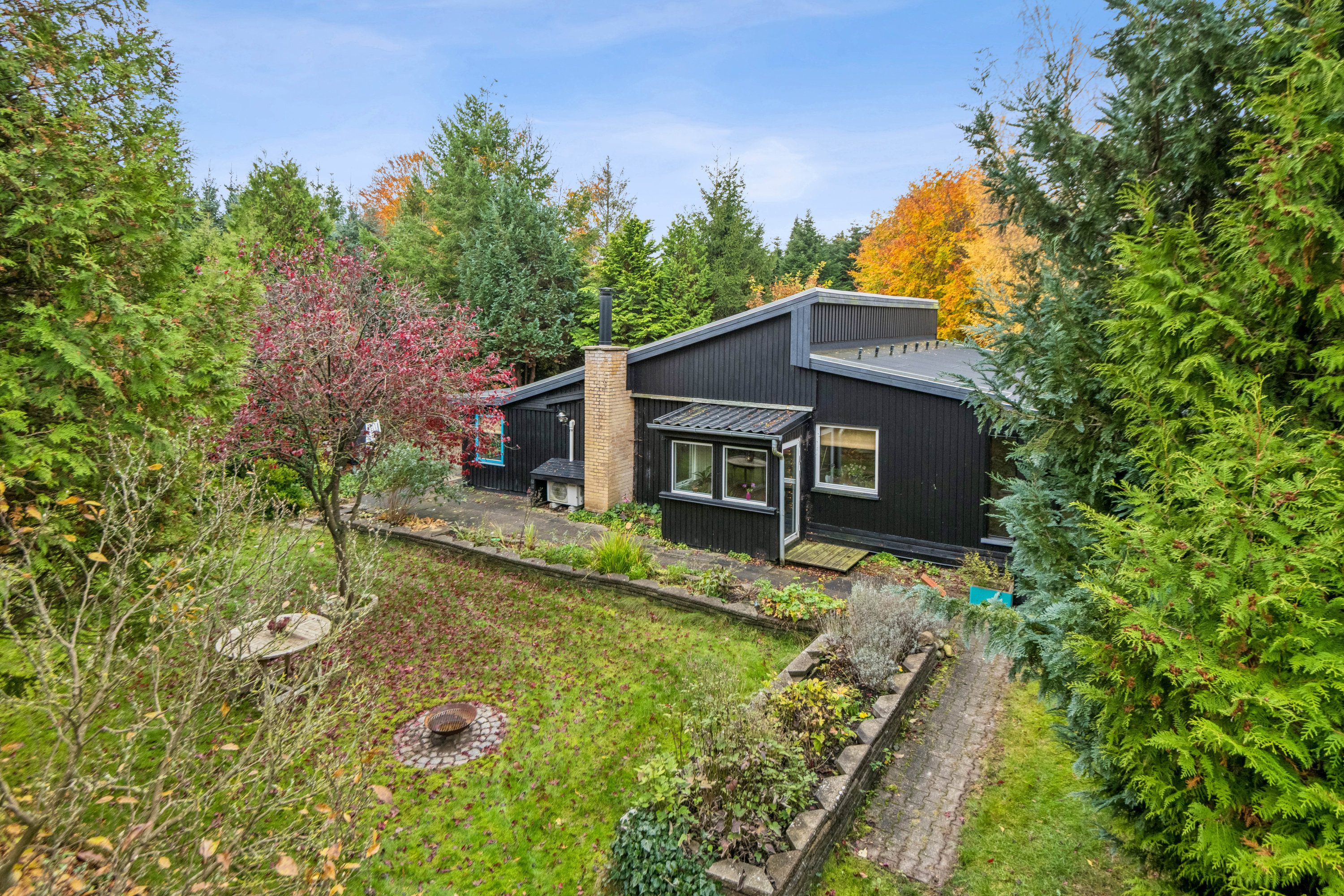 Dette fritidshus på 83 m² giver jer rig mulighed for at skabe et lyst og funktionelt hjem med en rolig beliggenhed omgivet af grønne arealer. Opført i 1953 er huset placeret på en 1.990 m² stor grund, der skærmer mod naboer og inviterer til udendørs aktiviteter i fredelige omgivelser. Facadernes sorte træværk og det markante, ryggede tagdesign giver boligen et tidløst arkitektonisk udtryk, mens den frodige have og den private terrasse bliver jeres personlige oase.