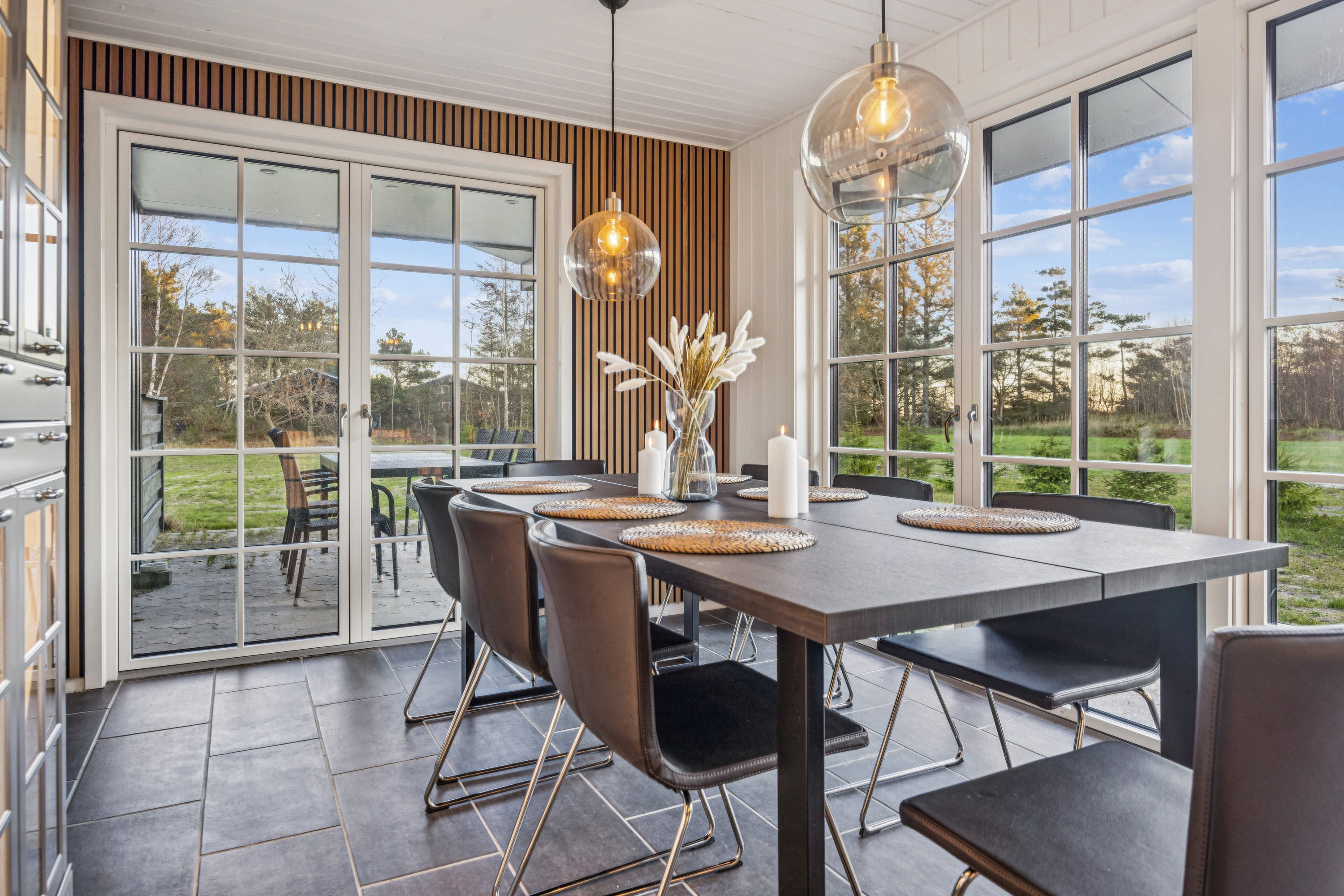 En indbydende kulisse for ferieminderne. Sjæl og charme går hånd i hånd med moderne æstetik i dette nydelige fritidshus fra 1985. Det er nemlig flot opdateret med et materialevalg og en farvepalette, der kunne være taget ud af et boligmagasin, mens det klassiske udtryk også emmer af sommerhusidyl.