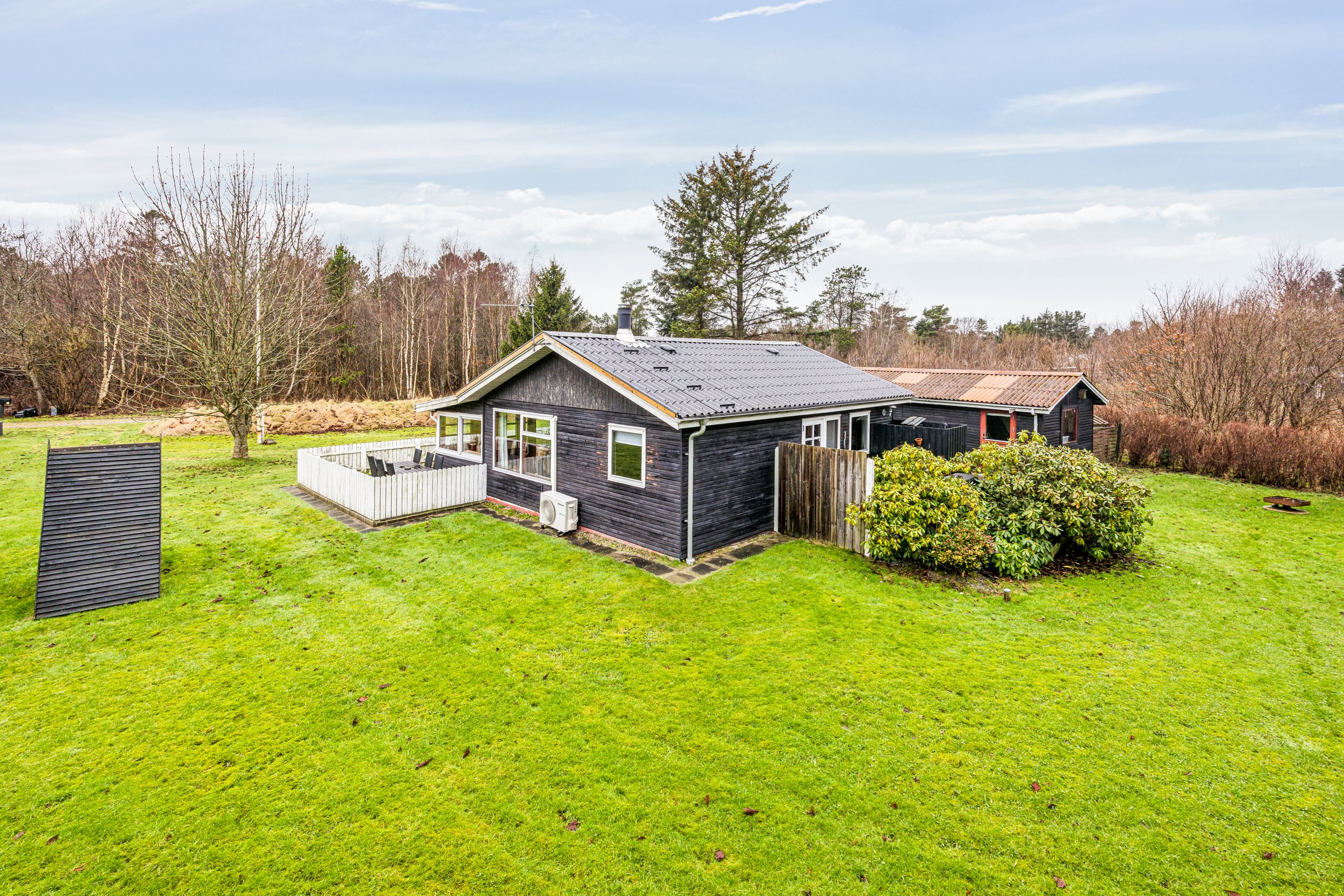 I cykelafstand til feriebyen Hou og stranden. Her får I et vaskeægte fritidshus med træ fra gulv til loft – hyggen kan ikke blive bedre – og med brændeovn, hvor I kan høre knitren i flammerne hele aftenen, er stemningen sat!