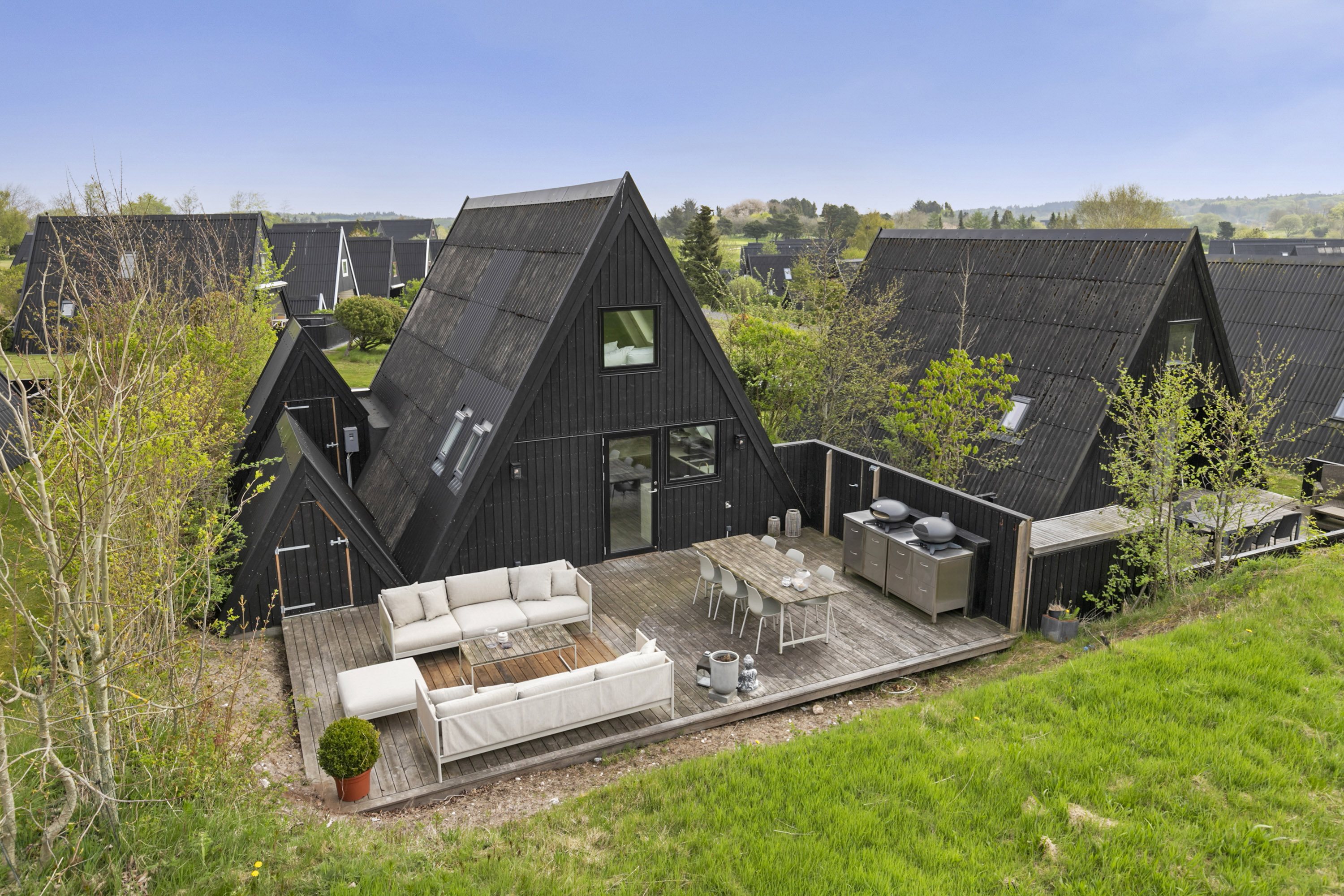 Huset ligger i "Slangen" i den vestlige del af området, hvor du på den ene side får ekstra plæneplade og på den anden sidder helt ugeneret med udsigt til skoven. Det giver samtidig lidt yderligere fleksibilitet, hvis der er en flok gæster på besøg, og alle bilerne skal parkeres, lige som ungerne også har lidt ekstra uderum boltre sig på, når de skal brænde energi af i den helt umiddelbare nærhed.