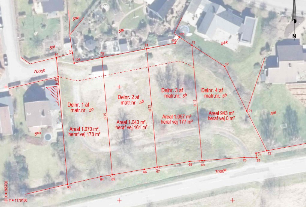 De fire grunde forventes udstykket til følgende størrelser (Se udstykningsplan)