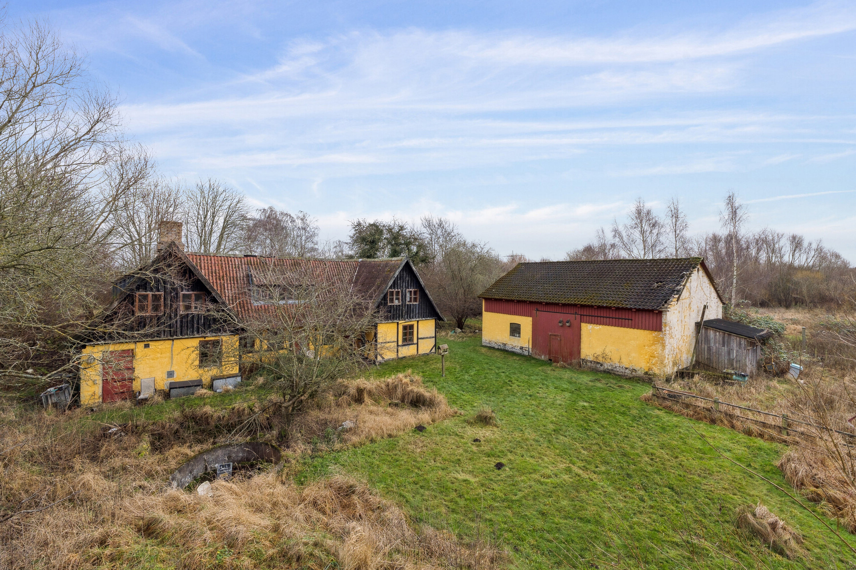 Denne ejendom henvender sig udelukkende til købere med projektbrillerne på – hvad enten man søger et større renoveringsprojekt eller en grund med mulighed for nybyggeri i landlige omgivelser.