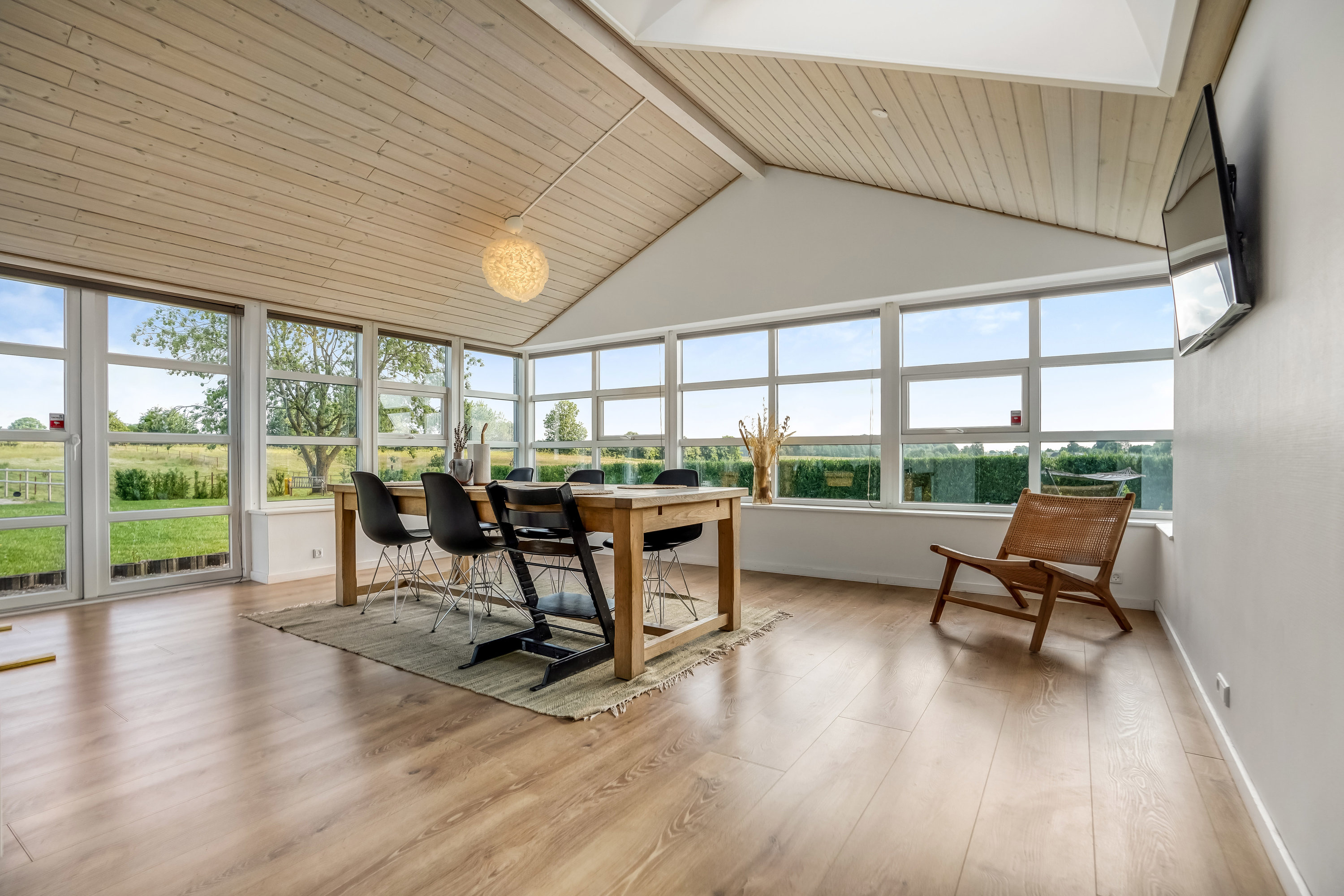 I stueplan finder man også et lyst og velindrettet soveværelse, et badeværelse, et praktisk bryggers samt et pænt køkken. Hjertet i boligen er det store og stemningsfulde alrum, som byder på et fantastisk lysindfald og en naturskøn udsigt over foldene. Her kan man sidde i ro og mag og betragte sine heste, der græsser fredeligt – det giver en enestående følelse af nærvær og overskuelighed.