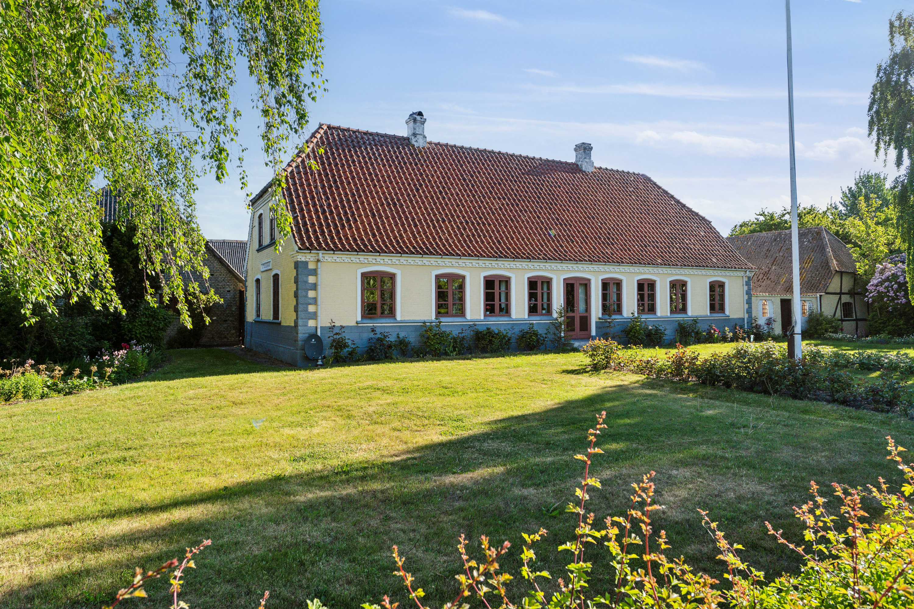 Indenfor i det hyggelige stuehus mødes man af en rummelig baggang, der byder velkommen til et åbent køkken-alrum – hjertet i dette hjem. Køkkenet tilbyder rummelighed og funktionalitet og hvorfra man adg. til den hyggelig opholdsstue med brændeovn og udsigt til haven og det hyggelige gadekær. Herfra kan man trække sig tilbage til spisestuen, hvor man kan nyde hyggelige stunder med familie eller gæster. Ejendommen disponerer desuden over et komfortabelt soveværelse, to værelser, entre og badeværelse.