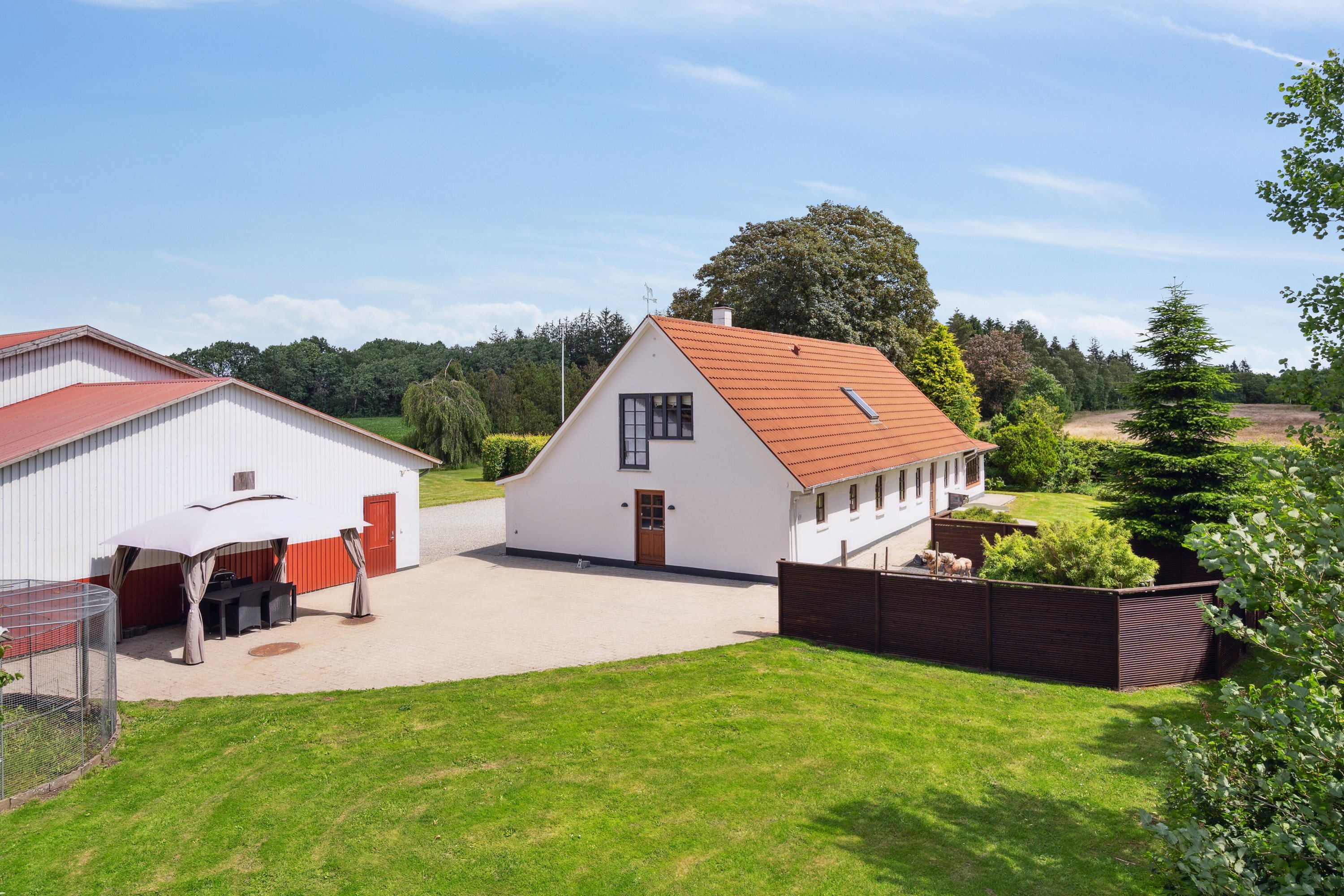 Udenfor kan I nyde den store terrasse og den flotte velholdte have. Desuden er der en super god lade i stål, som giver mange anvendelsesmuligheder. De 5,6 hektar jord ligger tæt på ejendommen og er derfor lettilgængelige, hvilket gør denne ejendom ideel til både hobbybrug og mindre landbrug