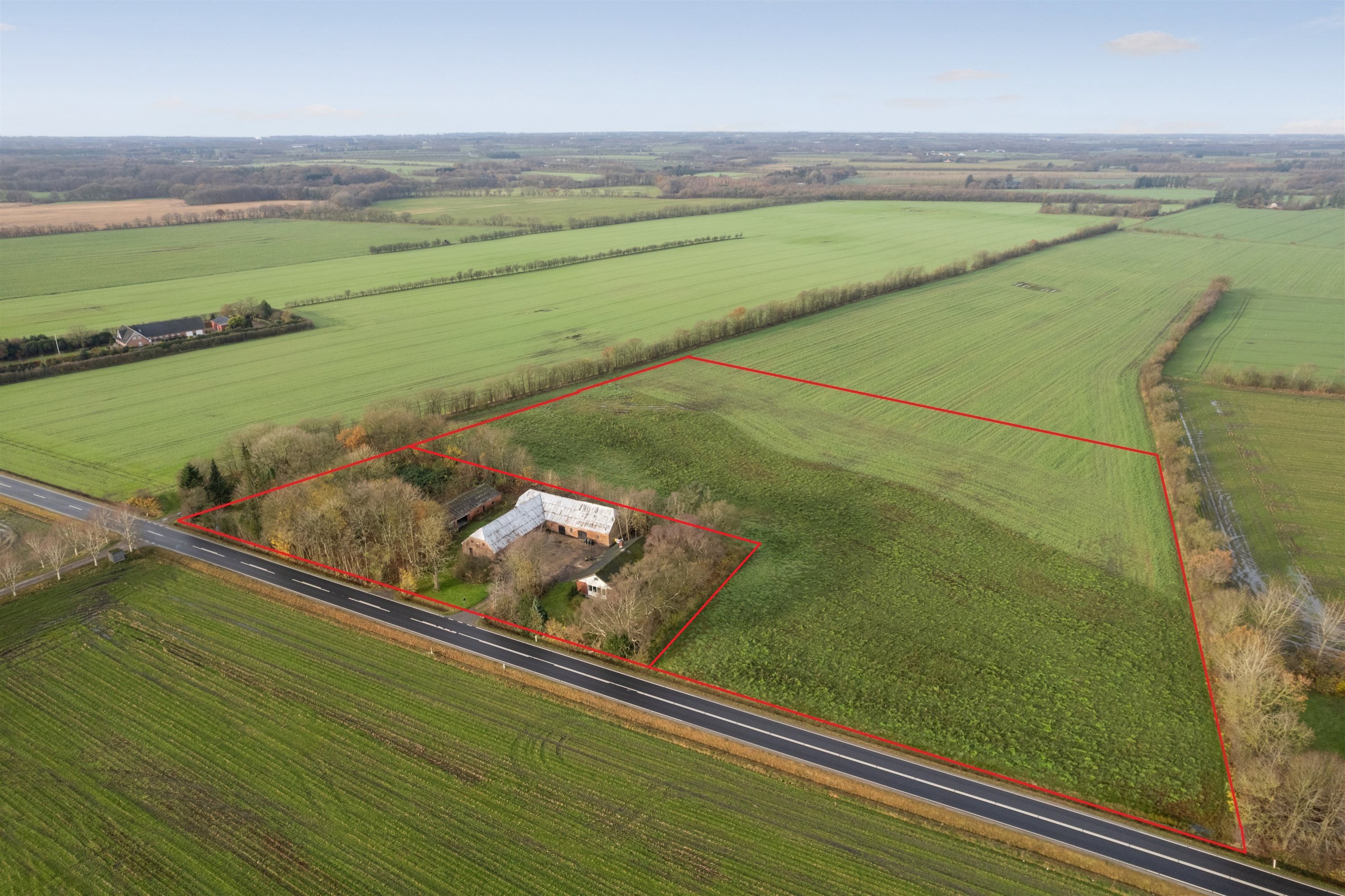 En landejendom hvor der sælges ca. 2.2 hektar med til ejendommen, et jordstykke som er beliggende lige op af ejendommen og bygningerne.