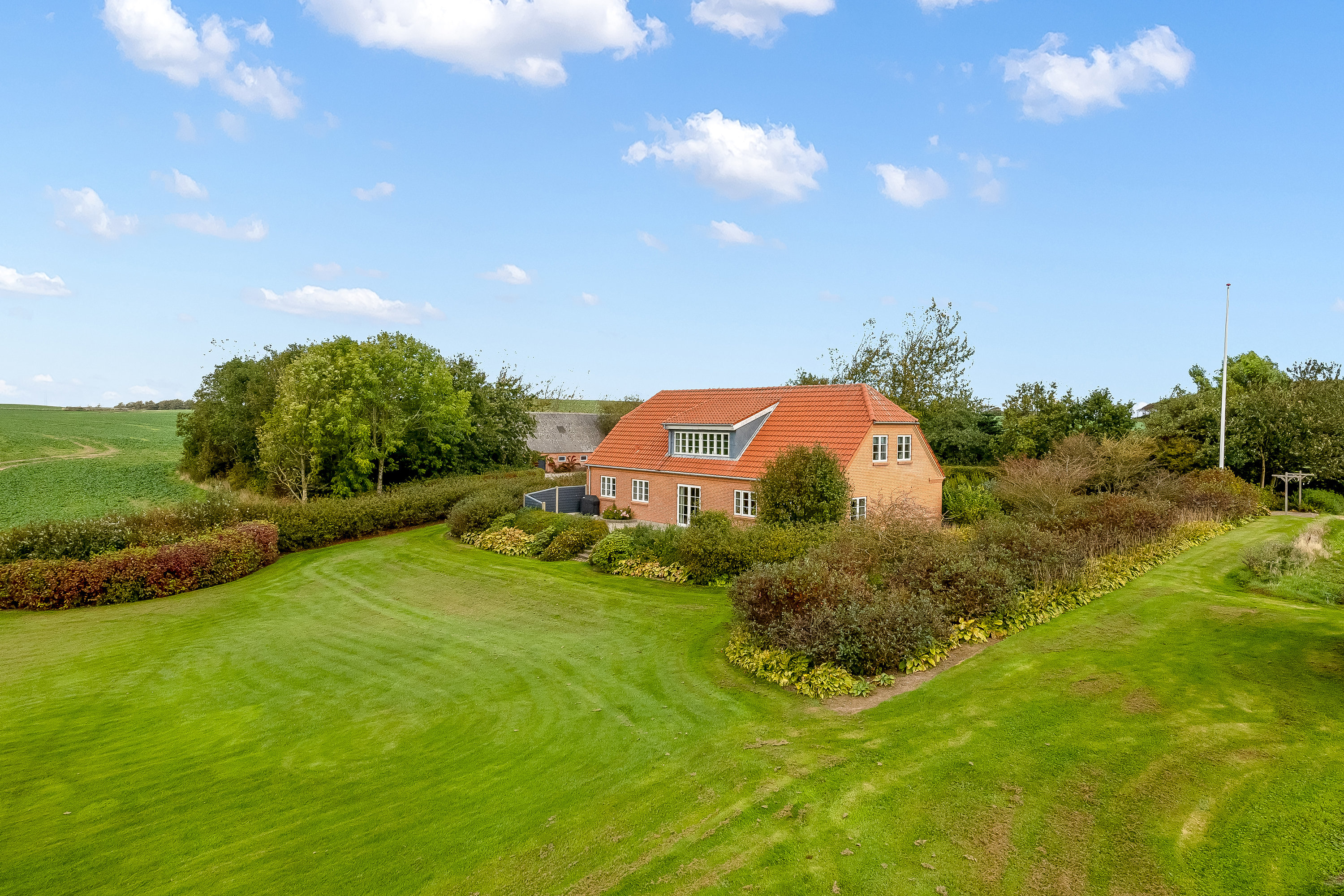 Ejendommen ligger roligt og ugeneret med åbne marker som nærmeste naboer og masser af plads til at udfolde sig – både for familien, hobbyprojekter og fritidslandbrug.