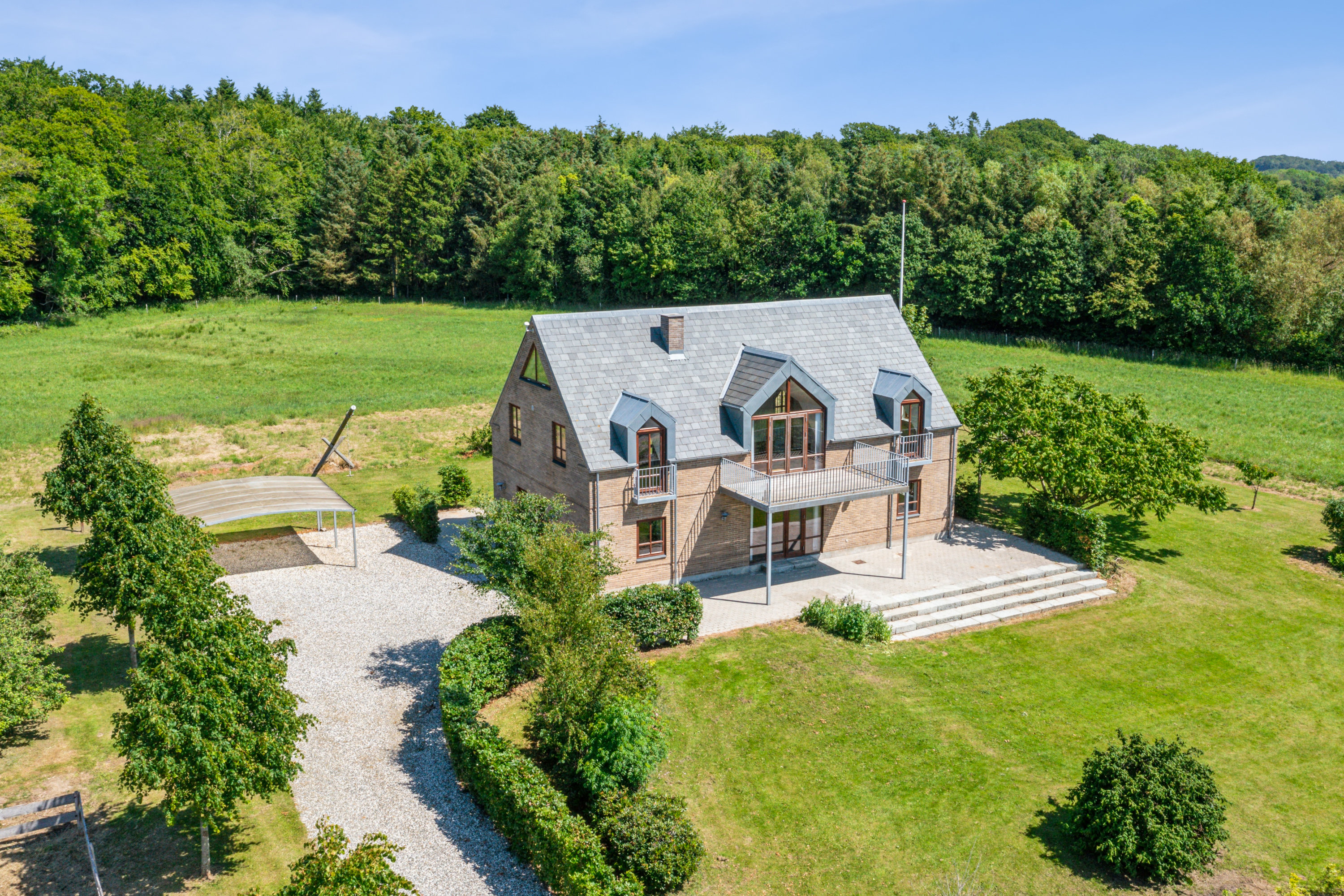 Grunden breder sig over 3,3 hektar og er ideel til hestehold, rekreative aktiviteter eller som jeres egen private naturpark. Her er der plads til både folde, ridebane og grønne oaser, hvor I kan nyde stilheden og det åbne landskab. Nabo til skov og den korte afstand til vandet gør det let at integrere naturen i hverdagen – uanset om det er til rideture, gåture eller blot afslapning i det fri.