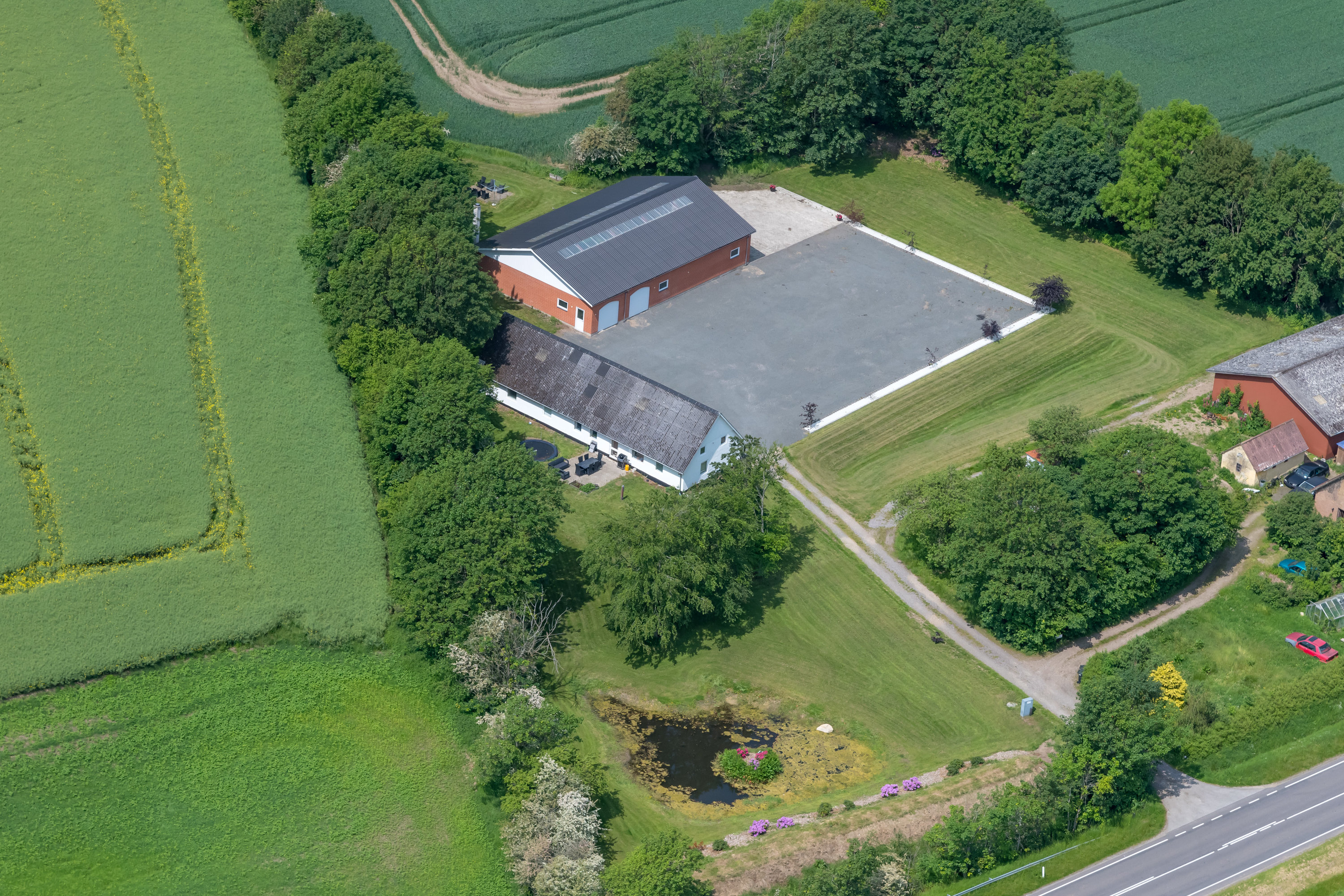 Et af ejendommens helt store aktiver er den imponerende maskinhal, som er opført i 2012 og fremstår i en kvalitet, der sjældent ses. Hallen rummer ikke alene plads til opbevaring, værksted eller erhverv – den indeholder også en stor integreret dobbelt garage, som gør helheden både funktionel og praktisk for mange forskellige behov.